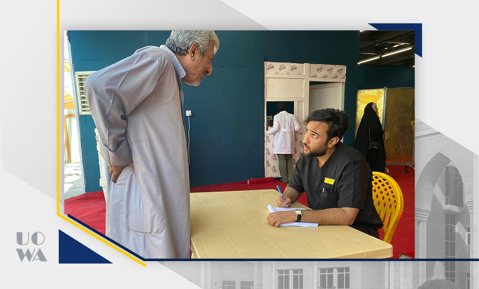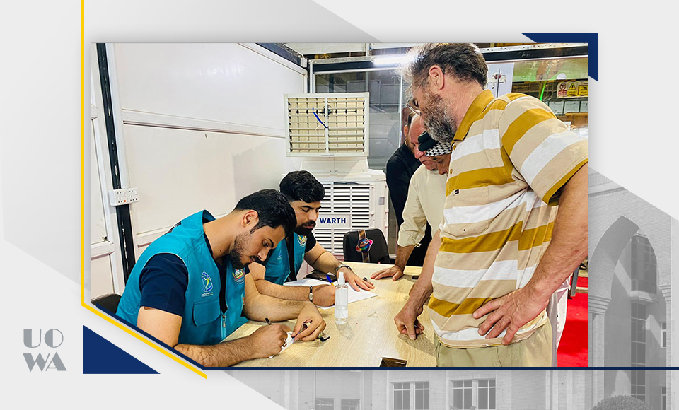 قدّم طلبة كلية التمريض في جامعة وارث الأنبياء (عليه السلام) خدمات طبية وتثقيفية لزائري العتبات المقدسة في كربلاء خلال زيارة يوم عرفة، بالتعاون مع مفارز هيئة الصحة والتعليم الطبي ومستشفى سفير الإمام الحسين (عليه السلام).