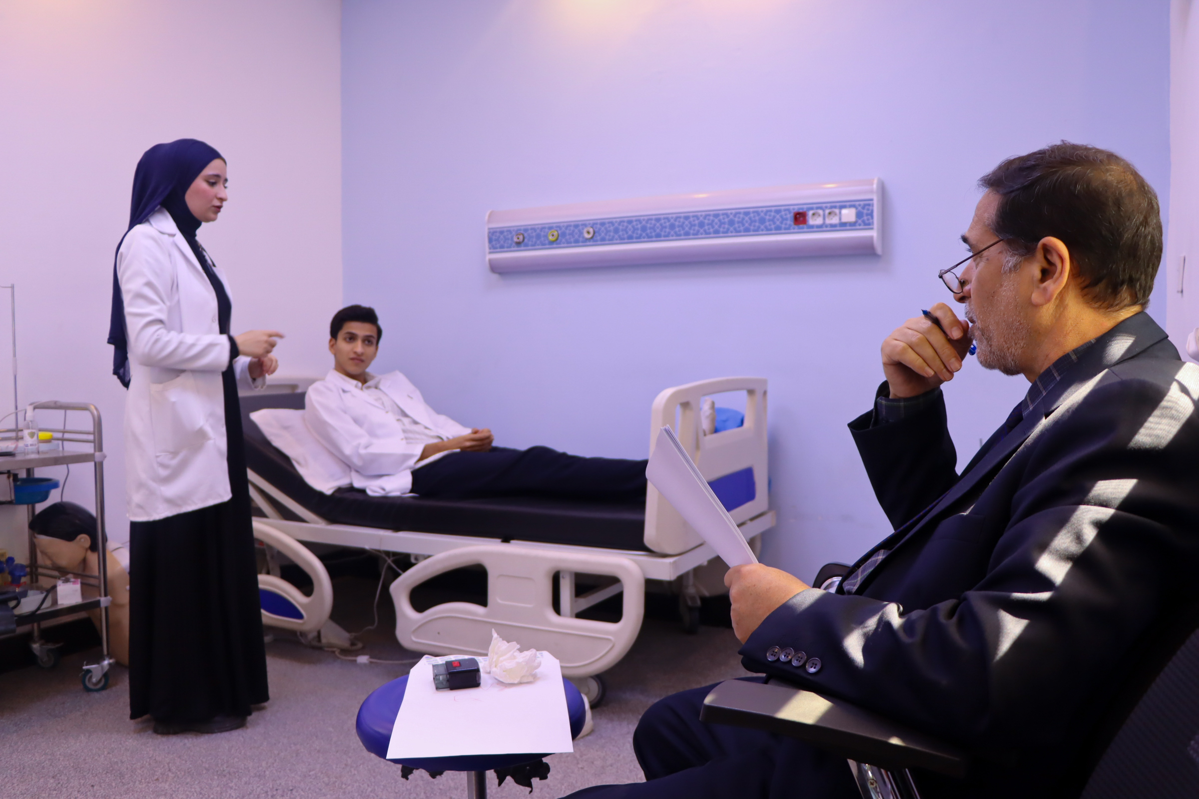 وشمل ذلك امتحان مادة الباطنية، الذي يُعد من الركائز الأساسية في التدريب السريري، حيث ركّز على تقييم مهارات الطلبة في أخذ التاريخ المرضي، وإجراء الفحص السريري الدقيق، وتحليل الحالات المرضية، ووضع الخطط العلاجية المناسبة وفق المعايير الطبية الحديث