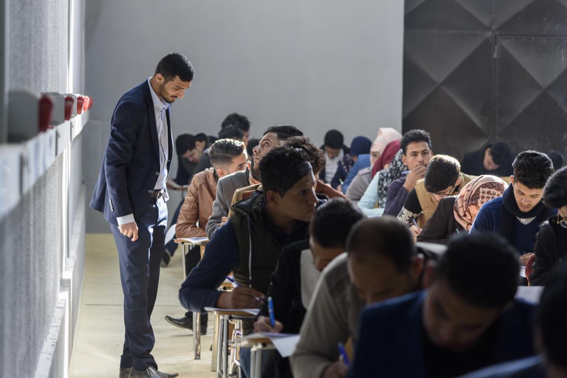 طلبة قسم هندسة تقنيات الروبوتات والذكاء الاصطناعي خلال تأدية امتحانات التقويم المستمر للفصل الدراسي الثاني.