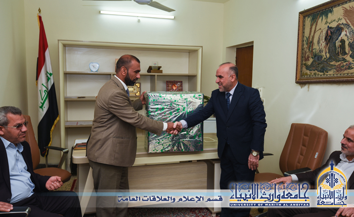 زار وفد من جامعة كربلاء جامعة وارث الانبياء من اجل تبادل الخبرات وفتح افاق التعاون بين الجامعتين حيث قدم رئيس الوفد الدكتور علي كريم خضير عميد كلية التمريض في جامعة كربلاء التهاني للجامعة وخص الدكتور خميس بندرعبيد عميد كلية التمريض في جامعة وارث الانبياء بلتبريكات متمنيا له وللجامعة كل التوفيق في مسيرتهم العلمية خدمة للمجتمع