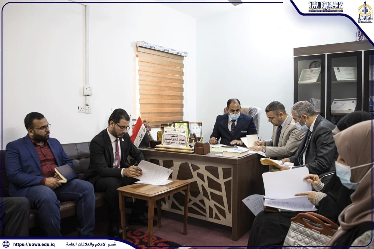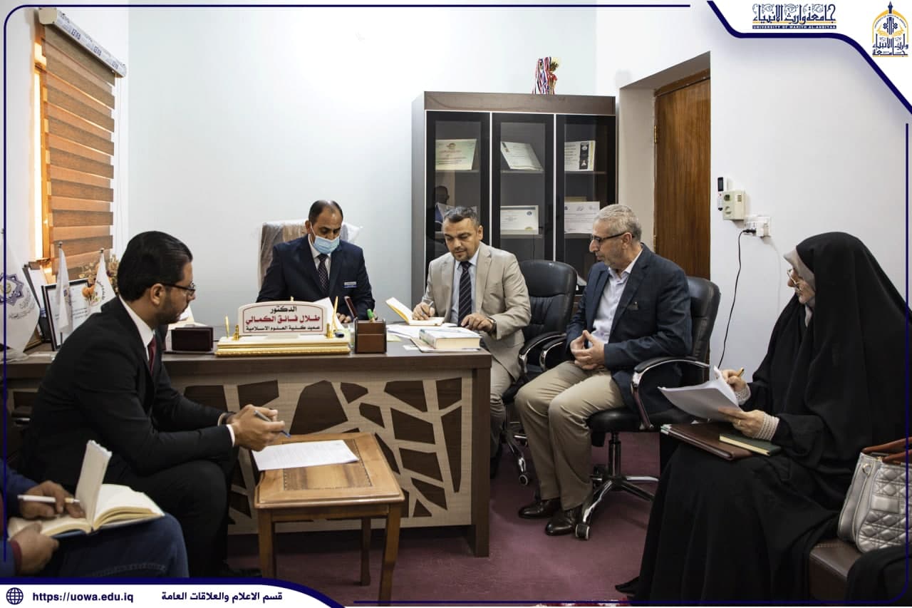 للإطلاع علىً الأبنية والقاعات الدراسية المخصصة لاستحداث عدد من الاقسام في كلية الادارة والاقتصاد/قسم ادارة التسويق وكلية العلوم الاسلامية/قسم العلوم المالية والمصرفية الاسلامية ، وابدت اللجنة ارتياحها لماتحتوية الجامعة من امكانيات مادية وبشرية وقاعات دراسية ذات طاقة استيعابية مستوفية للشروط ومجهزة بكل الوسائل التعليمية الحديثة