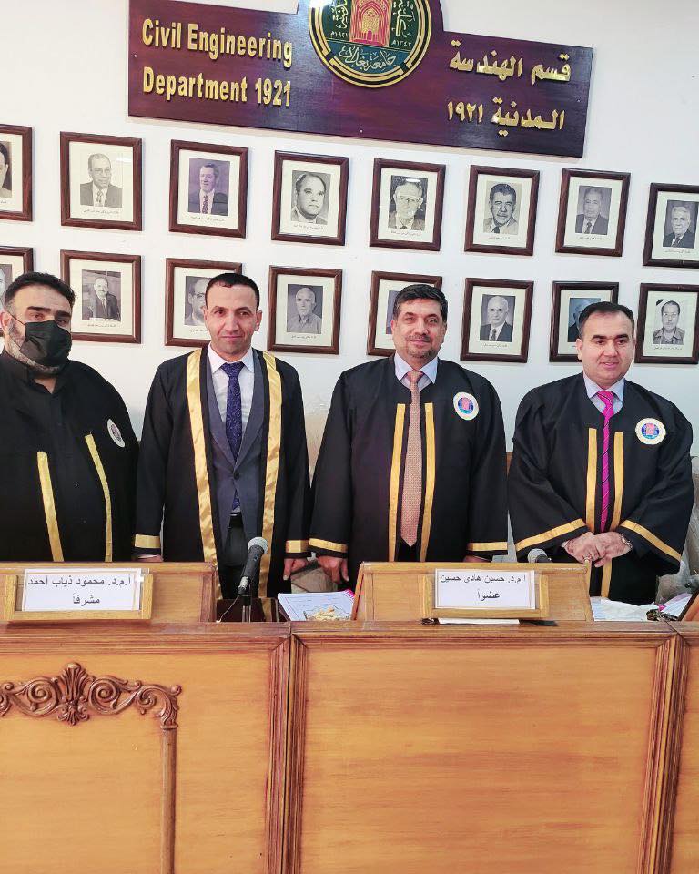 اختير الأستاذ المساعد الدكتور حسين هادي معاون عميد كلية الهندسة عضوا لمناقشة رسالة ماجستير لاحد طلبة الدراسات العليا في كلية الهندسة /قسم الهندسة المدنية بجامعة بغداد،