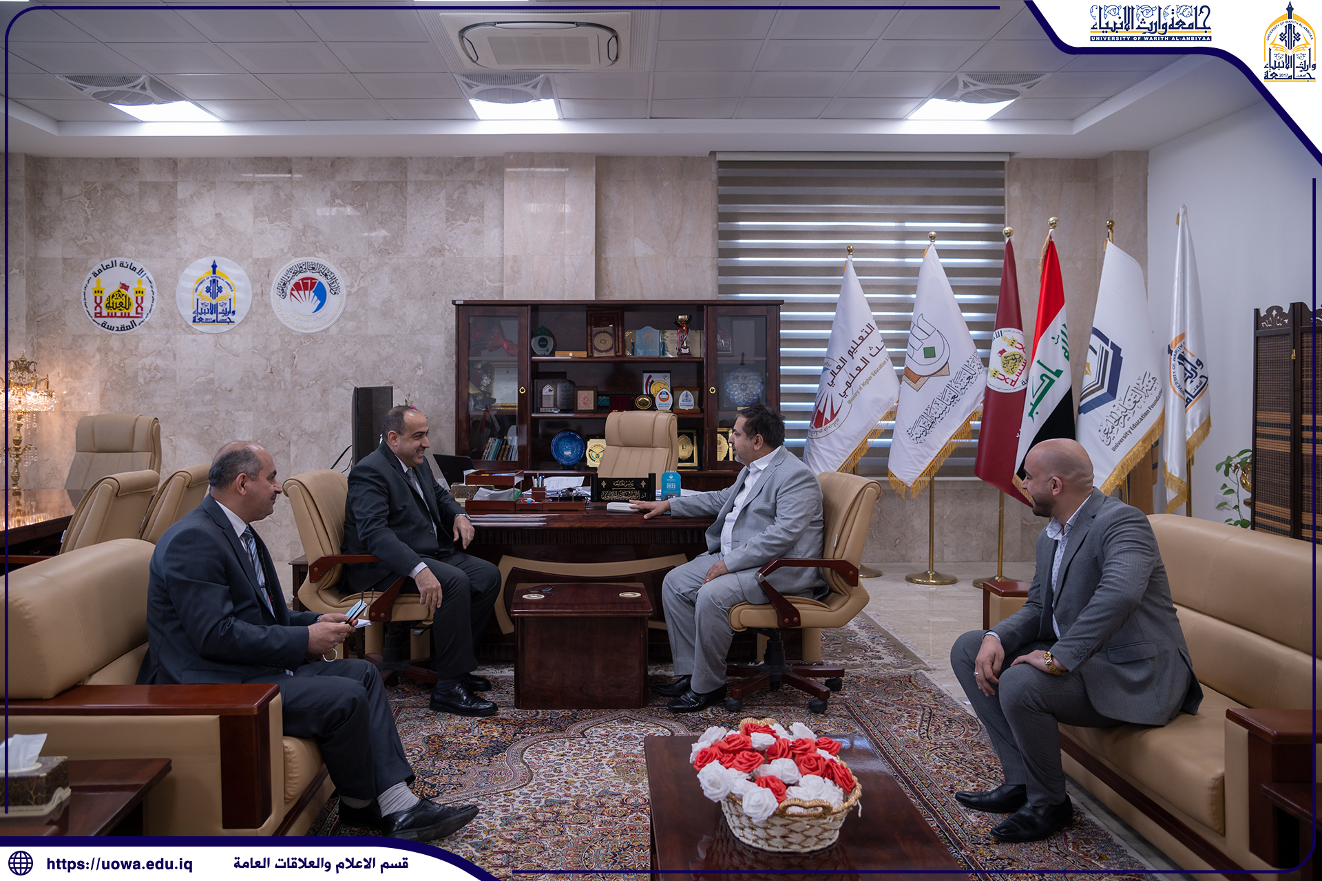 لغرض الإطلاع على سير الامتحانات الالكترونية والحضورية، استقبل السيد رئيس جامعة وارث الانبياء(عليه السلام) الاستاذ الدكتور ابراهيم الحياوي