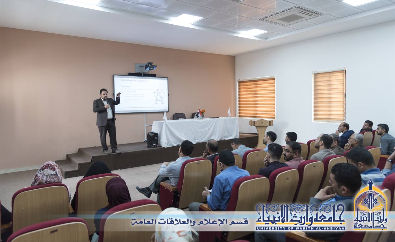 اقام مركز التعليم المستمر وبالتعاون مع قسم ضمان الجودة والأداء الجامعي حلقة نقاشية بعنوان ( الامتحانات الإلكترونية) القاها الدكتور علي فوزي التدريسي في جامعة كربلاء / كلية الهندسة، وقال الدكتور حاكم سماوي سلطان مدير مركز التعليم المستمر ان هذه الحلقة انطلقت ضمن اسبوع الجودة الذي سيكون اسبوع توعوي تثقيفي حول ضمان الجودة والأداء الجامعي في جامعة وارث الأنبياء (عليه السلام)، وتحدث الدكتور علي فوزي ان هذه الحلقة ألقيت لرفع الغموض والمخاوف عن هذا الموضوع لان الامتحانات الإلكترونية والتعليم الالكتروني اصبح حاجة ملحة وان اغلب الجامعات بدأت تدريجياً بتطبيقه وان المشكلة التي يعاني منها اغلب الاساتذه والطلاب انهم غير مهيأين على الطريقة الالكترونية، لذالك جاءت هذه المحاضرة لشرح المحددات والفوائد الكثيرة للامتحان الإلكتروني وماله من تسهيلات كثيرة للاساتذه في وضع الاسئلة وتصحيح وإعطاء النتائج بصورة سريعة