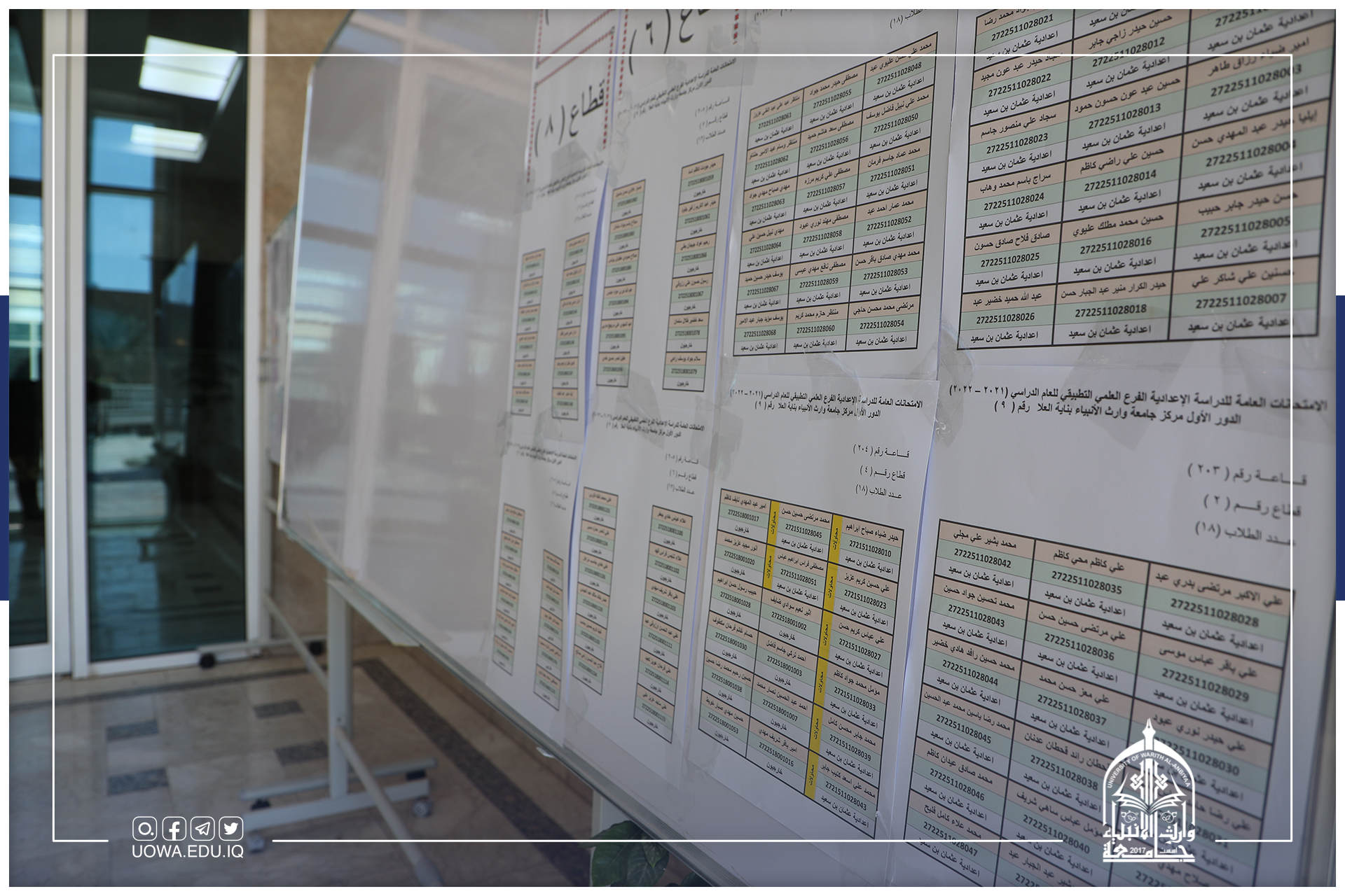 حرصاً منها على خدمة المجتمع وبعد فتح افاق التعاون مع مديرية التربية في محافظة كربلاء المقدسة، وفرت جامعة وارث الانبياء(عليه السلام) جميع الإمكانات المادية والبشرية لانجاح الامتحانات النهائية لطلبة الدراسة الإعدادية المنتهية والتي انطلقت اليوم الأربعاء 20-7-2022