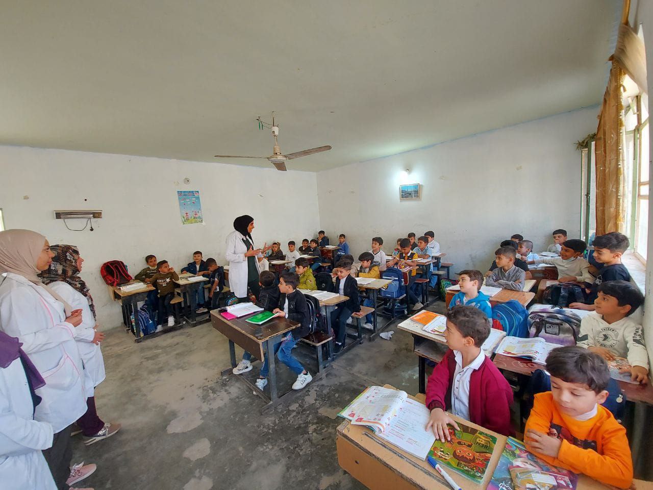 وجاءت هذه الزيارة باشراف اساتذة الكلية لاجراء مسح ميداني للتشخيص المبكر لامراض سوء التغذية وضعف البصر لدى الطلبة.