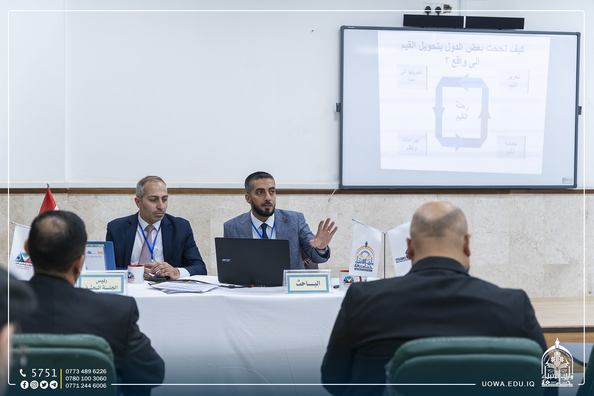 جانب مصور من الجلسة المسائية "للمؤتمر الوطني الاول" الذي اقامته جامعة وارث الانبياء(عليه السلام)/ كلية العلوم الإسلامية، وبالتعاون مع قسم تطوير الموارد البشرية" والذي تضمن ٥٣ بحث علمي فازت منها خمسة بحوث، وتم تكريمهم بدرع التميز اما بقية البحوث فتم تكريمهم بجوائز أخرى.
