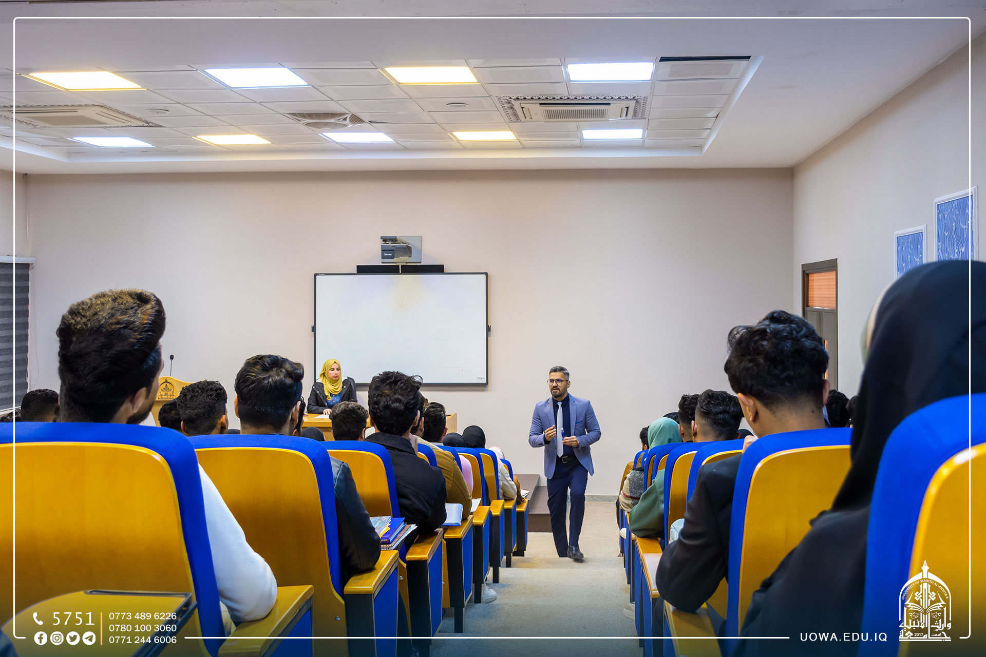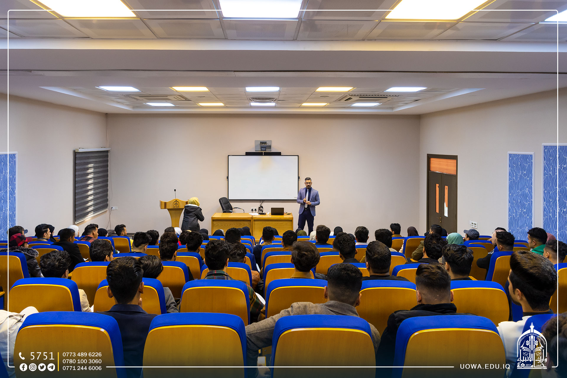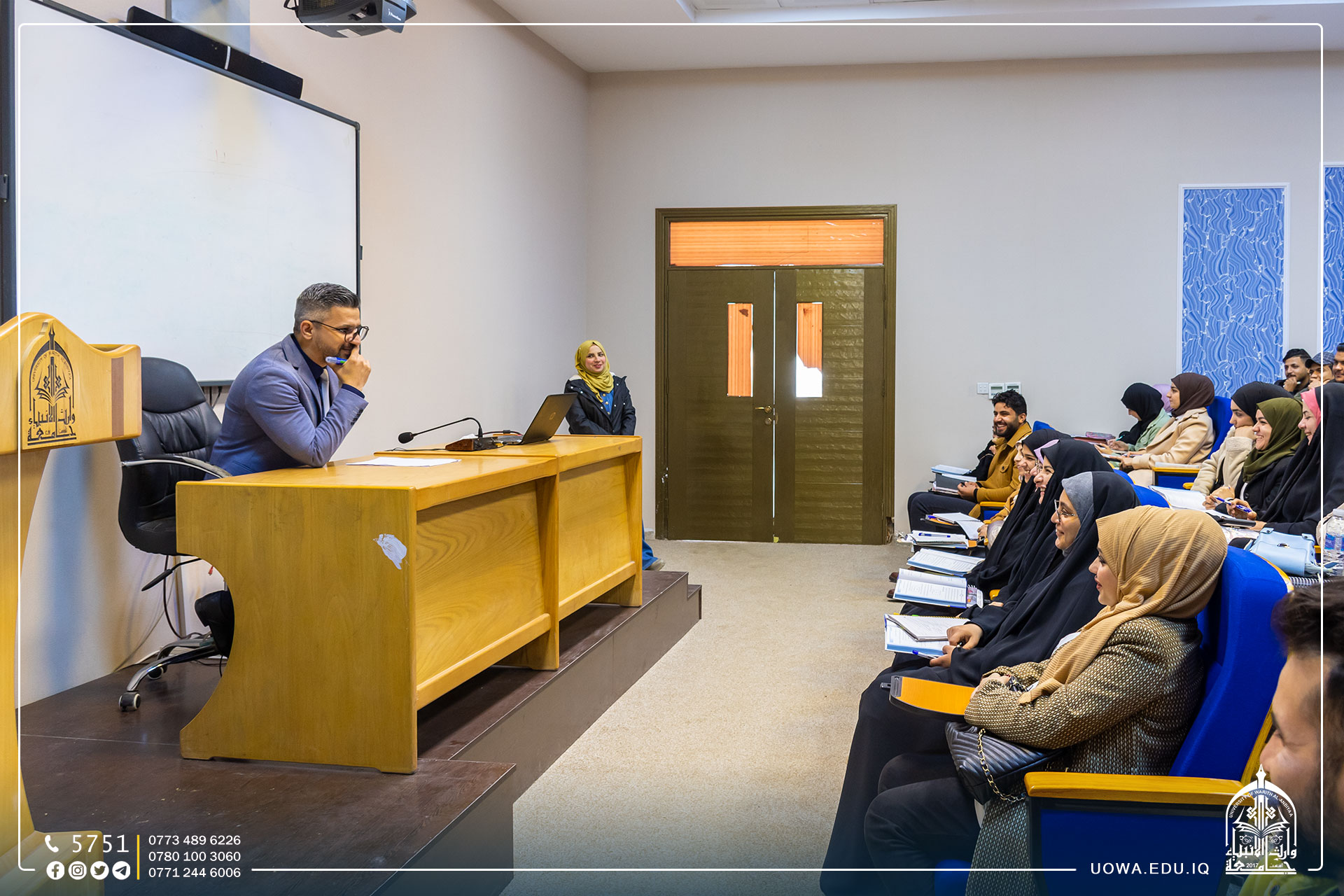 حلقة نقاشية في جامعة وارث الانبياء(عليه السلام) اقامها قسم الشؤون العلمية / وحدة تمكين المراة تحت عنوان(التغيير بين بيئة الاعدادية والحياة الجامعية لطلاب المرحلة الاولى)، قدمها المدرس المساعد عبد الامير صبار.