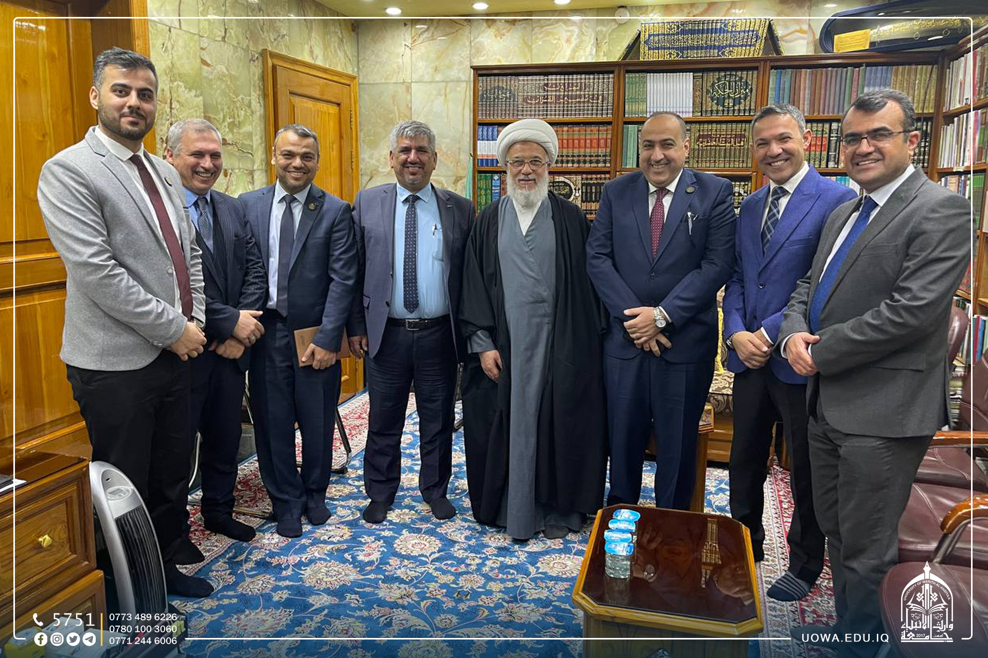 تشرف وفد جامعة السليمانية، بزيارة المتولي الشرعي للعتبة الحسينية المقدسة سماحة الشيخ عبد المهدي الكربلائي (دام عزه)، وجناب الامين العام الاستاذ حسن رشيد العبايجي (دام توفيقه) برفقة السيد رئيس الجامعة الاستاذ الدكتور ابراهيم الحياوي .