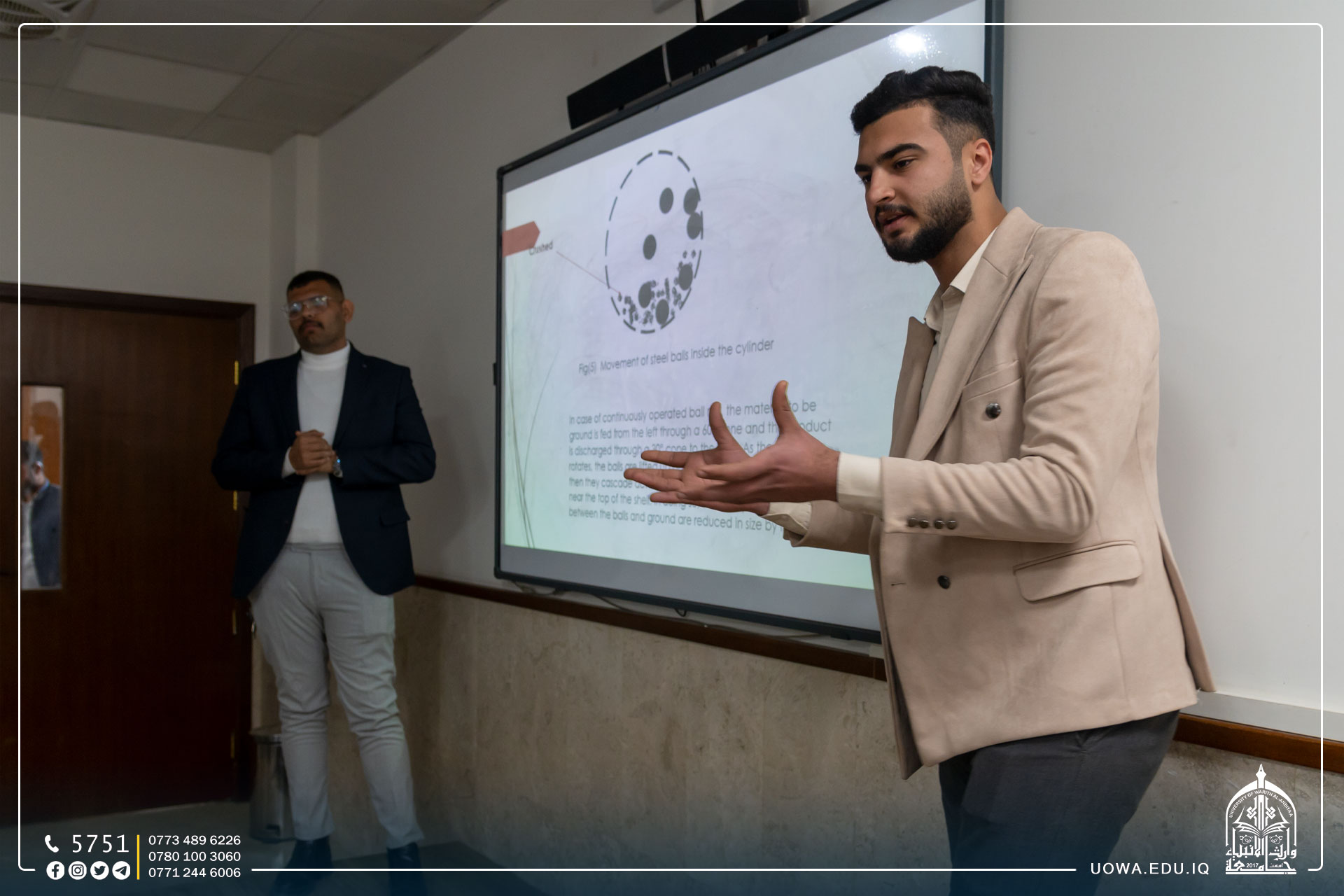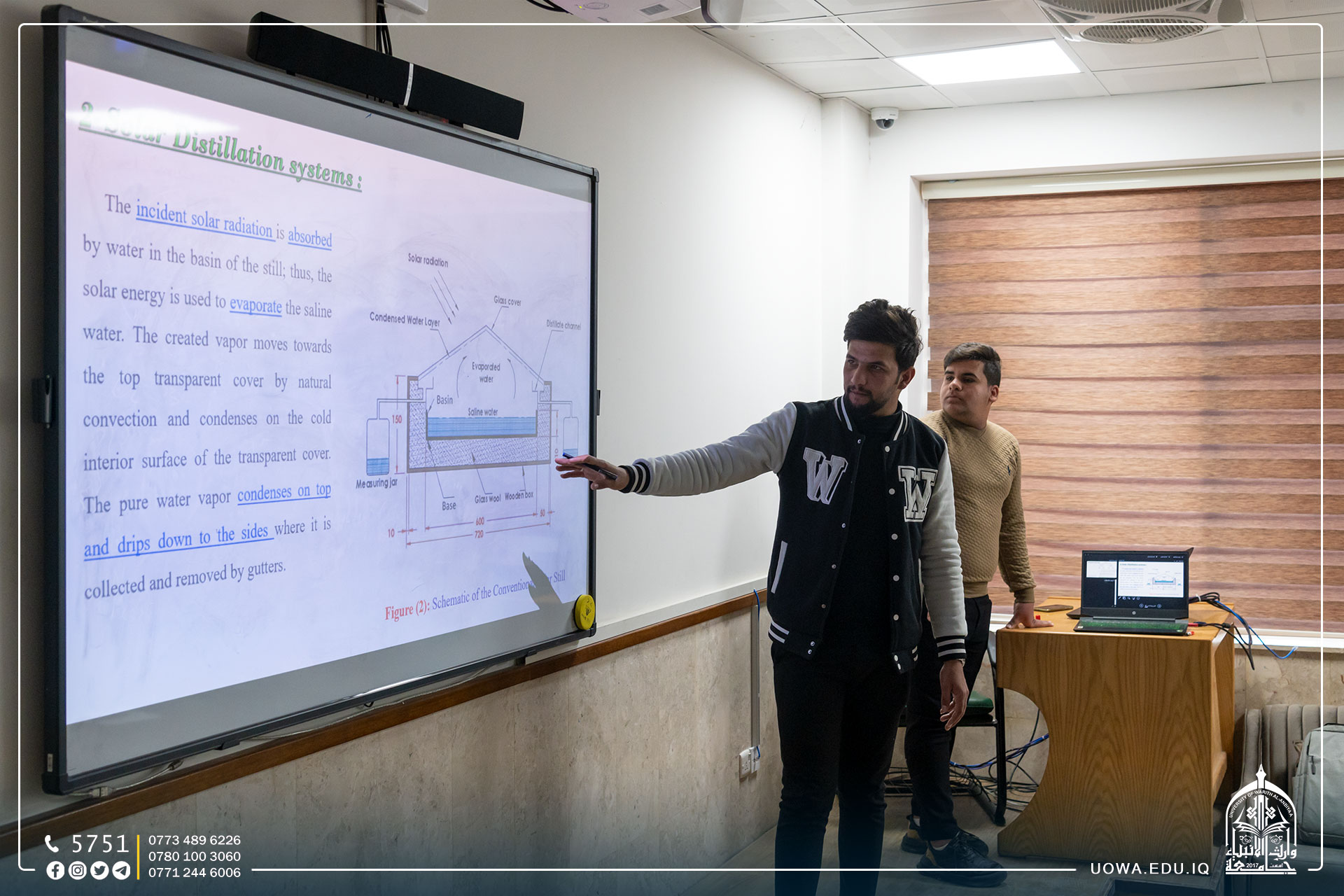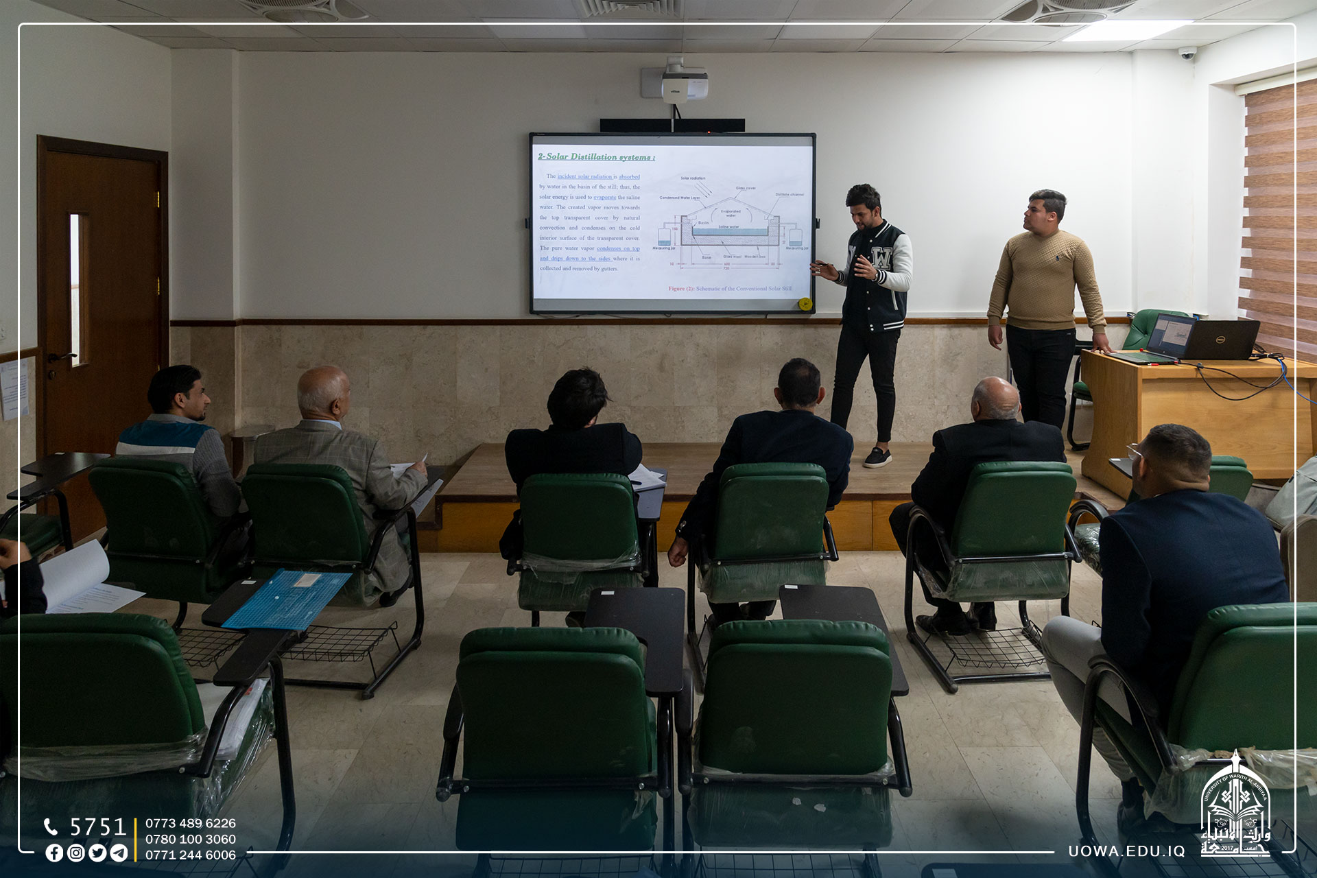 بحضور السيد مساعد رئيس الجامعة للشؤون الادارية الاستاذ الدكتور نوفل الاعرجي طلبة كلية الهندسة/ قسم هندسة تقنيات التكييف والتبريد يقدمون العرض الاولي لمشاريع تخرجهم.