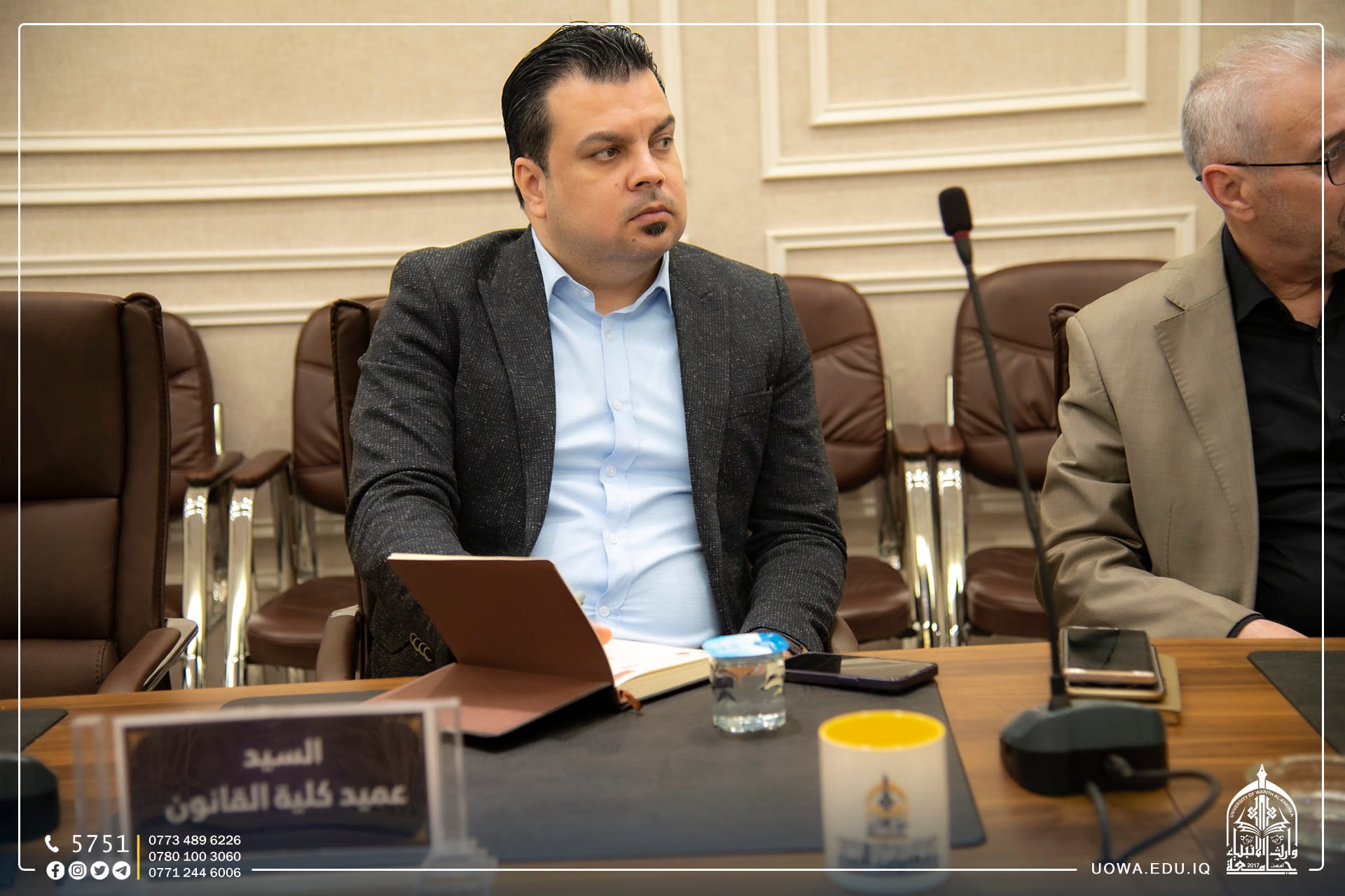 مجلس جامعة وارث الانبياء(عليه السلام) يعقد جلسته الاعتيادية برئاسة الاستاذ الدكتور ابراهيم الحياوي وعضوية السادة مساعدي رئيس الجامعة للشؤون الإدارية والعلمية والسادة عمداء الكليات لمناقشة جملة من القرارات التي تخدم الجامعة وطلبتها الاعزاء.