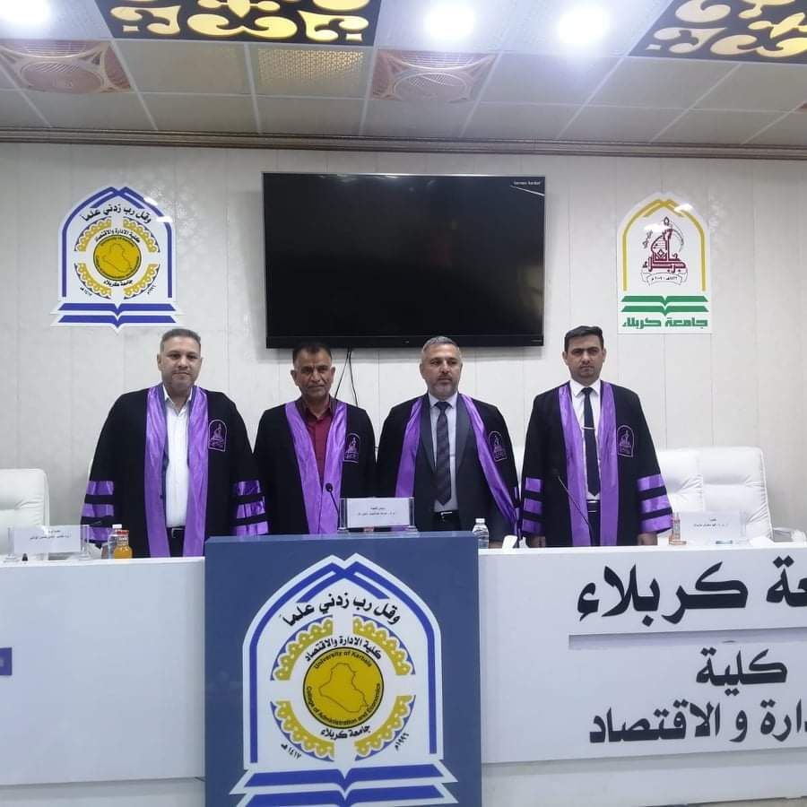 شارك الاستاذ المساعد الدكتور فهد الشمري المعاون العلمي لكليه الادارة والاقتصاد في مناقشة علميه لطالب الدبلوم من قسم الاقتصاد(ناجح شاكر عبد الشاه) عن بحثه الموسوم (تقييم كفاءة الأداءالاقتصادي لمطحنة الحسين ) وذلك في يوم الثلاثاء الموافق ٢٠٢٢/٢/٨ في جامعة كربلاء كليه الادارة والاقتصاد .