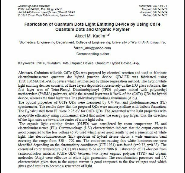 وحسب ما تحدث به الباحث بان البحثيين اختصا في تصميم الاجهزة الباعثة للضوء من مواد نانوية ومركبات عضوية من بوليمرات مختلفة التركيب تسمى ((OLEDs)) والتي تتشكل هندسياً بطريقة كيميائية معينة وتبعث ضوءً ذو ضيائية عالية وبكفاءة ممتازة وبفولتية كهربائية قليلة قد تصل الى (11فولت)