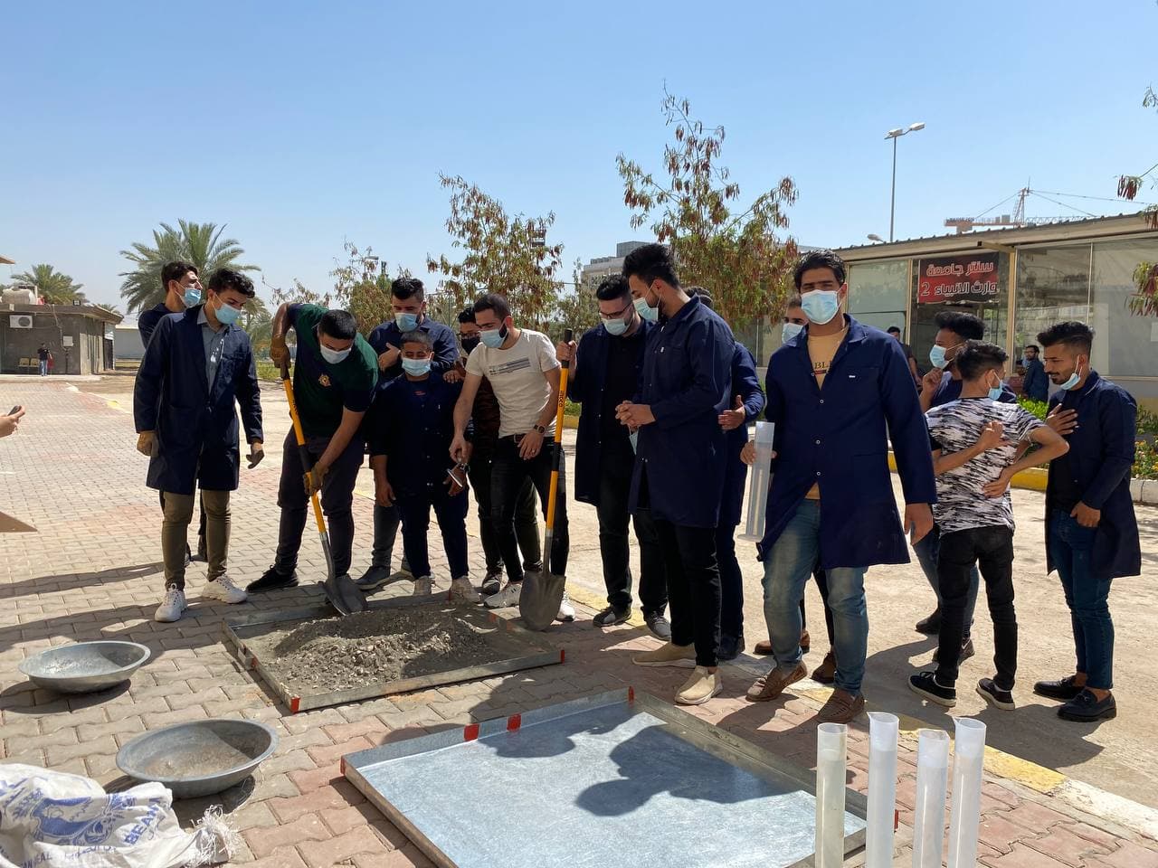 جانب من المحاضرة العملية مادة تكنولوجيا الخرسانة لطلبة المرحلة الثانية في قسم الهندسة المدنية