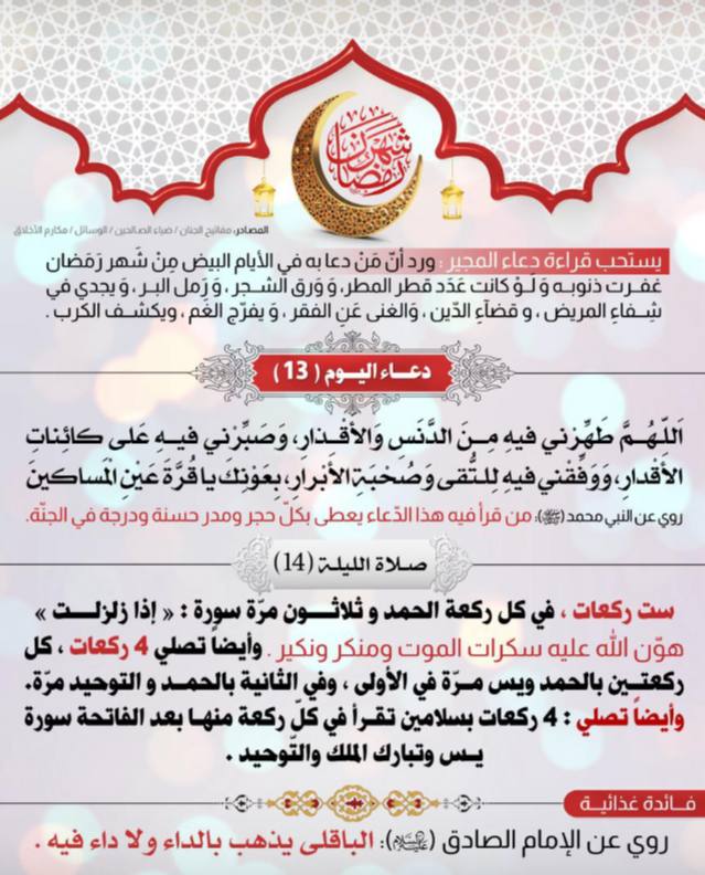 دعاء اليوم الرابع عشر من شهر رممضان وصلاة اليلة الخامسة عشر من الشهر الكريم