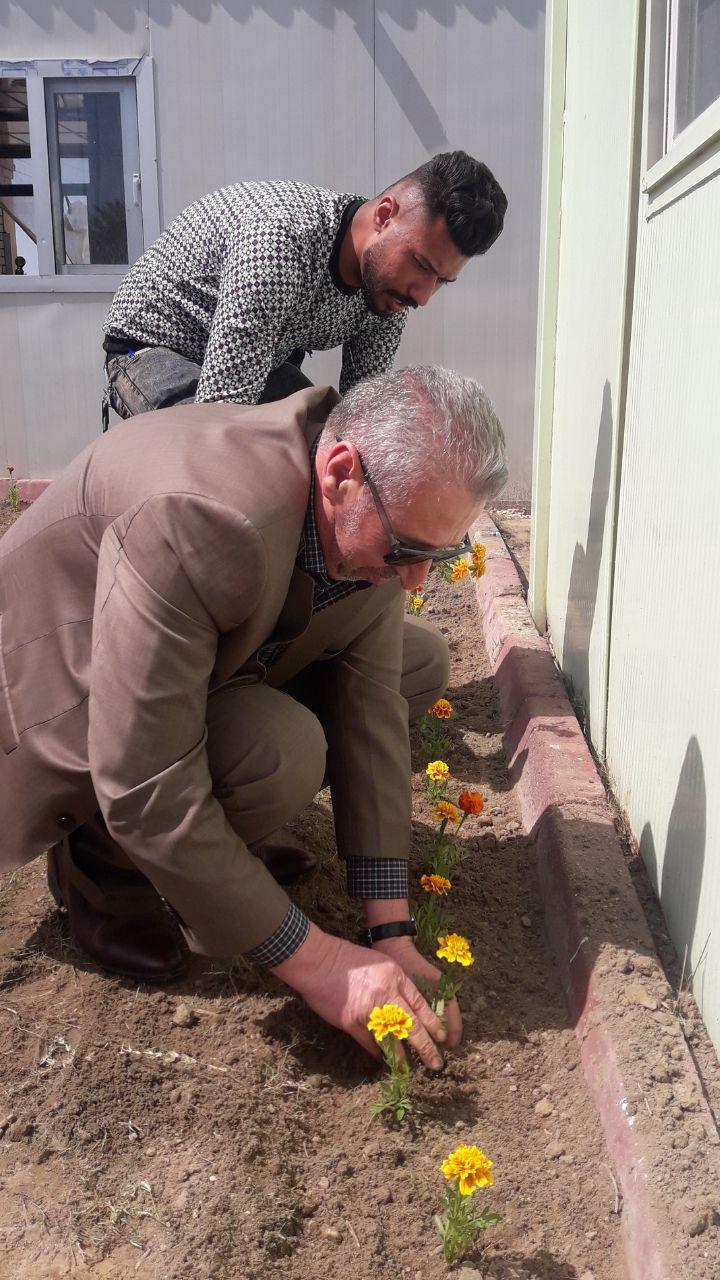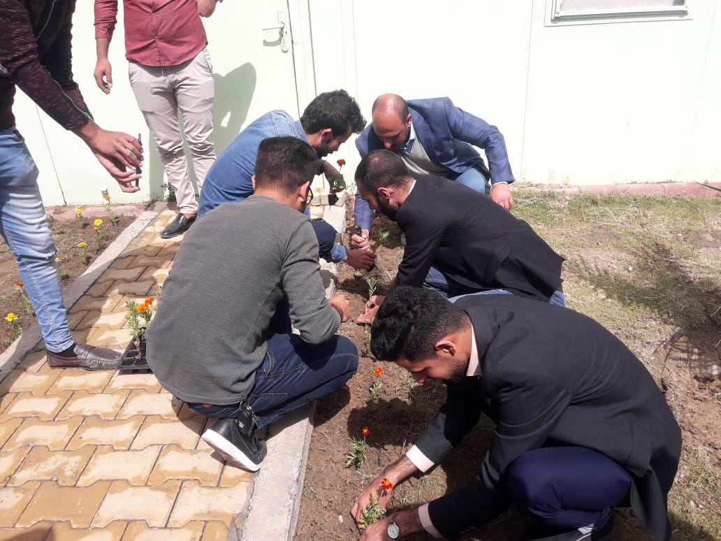 شارك عميد كلية العلوم الاسلامية الدكتور طلال فائق الكمالي مع طلاب الكلية واساتذتها في حملة تشجير حدائق الجامعة وتزيينها بالورود الموسمية وقد تزامن هذا العمل مع اعياد الشجرة لبث روح التعاون وحماية البيئة .