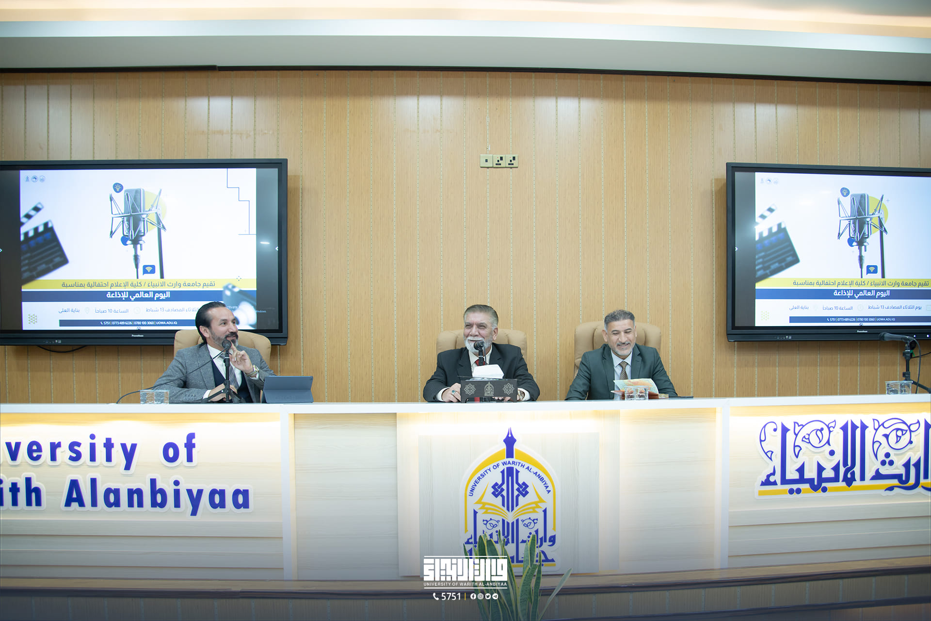 اقامت كلية الإعلام في جامعة وارث الانبياء(عليه السلام) احتفالية بمناسبة "اليوم العالمي للإذاعة" بحضور نخبة من الإذاعيين الرواد في مدينة كربلاء المقدسة ، وعدد من الإذاعات المحلية في المحافظة.