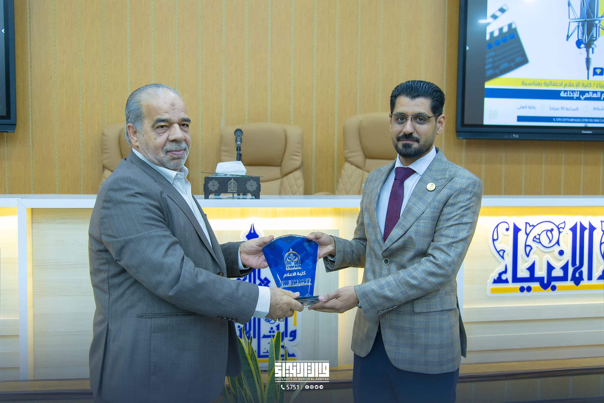 وفي نهاية المطاف كرمت الكلية ممثلي الإذاعات والاذاعي الفنان القدير صاحب شاكر بدروع تذكاريه فيما فاجئ الطلبة عميد الكلية واحدى الاستاذات بتقديم درع شكر وتقدير  .