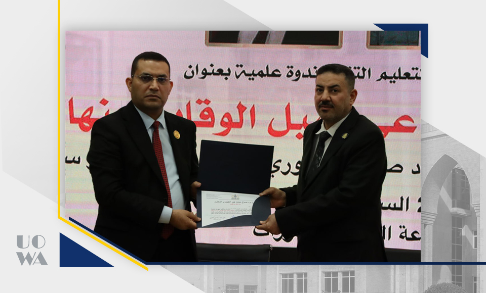 حضر الندوة السيد العميد والسيد معاون العميد للشؤون العلمية، إلى جانب نخبة من الأساتذة والطلبة المهتمين بهذا المجال المتجدد.