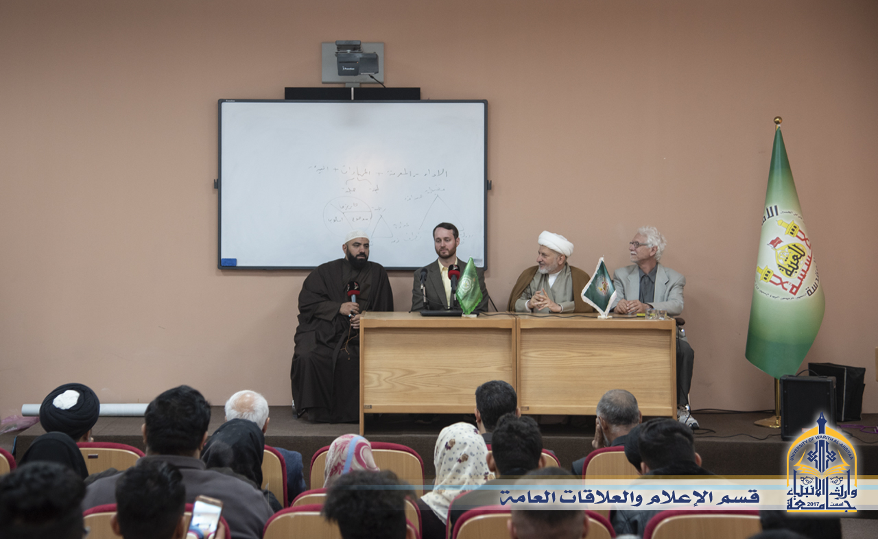 إستضافت كلية العلوم الإسلامية الدكتور علي الشيخ أستاذ الفلسفة في جامعة المصطفى على قاعة الحسن (ع) في مبنى كلية الإدارة والإقتصاد , وإقامة ندوة علمية تحت عنوان (الأديان في القرآن . وقد ألقى الدكتور علي الشيخ محاضرة علمية قيمة في ضوء العنوان المذكور آنفاًعرض فيها أهم الجوانب التي تثبت صحة الدين الاسلامي وأوليته في قبال الأديان الأخرى وكذلك عرض قضية عدم تحريف القرآن وجوانب من بلاغته وقد إستمرت المحاضرة ثلاث ساعات أبدع فيها الدكتور الشيخ .