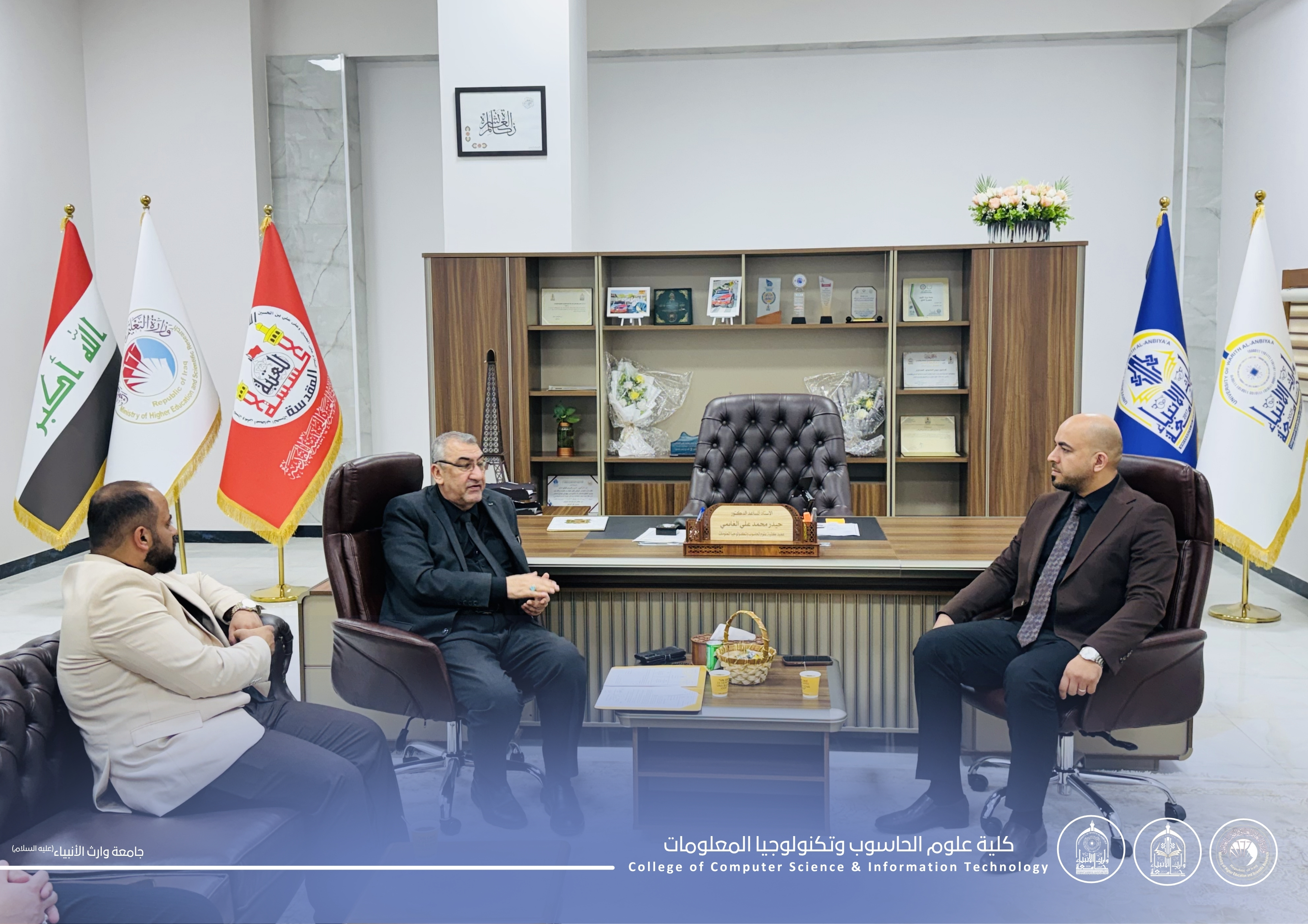 من اجل توسيع افاق التعاون العلمي والأكاديمي التقى رئيس الجامعة الاستاذ الدكتور طالب حسن الموسوي بعميد كلية الحقوق في المملكة الأردنية الهاشمية الدكتور عمر محمود اعمر الذي أبدى اعجابه بالجامعة وبالبنى التحتيه لها ، وعبر عن أمله في ان يتم التعاون بين كلية الحقوق في الاردن وجامعة وارث الأنبياء