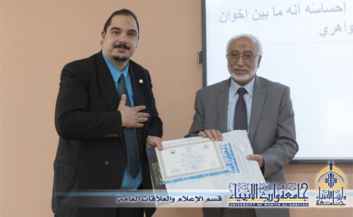 بمبادرة رائعة ملئها روح التعاون وتعبيراً عن فرحتهم الغامرة بالصرح الجامعي الفتي زار جامعة وارث الانبياء وفد من جامعة كربلاء حيث ذكر التدريسي في كلية القانون الدكتور عباس علي محمد الحسيني أن زيارة الوفد جاءت على ضوء أهمية الجامعة الجغرافية والعلمية ولما تحمله من بركات الراعي الاول لها وهو سيد الشهداء (سلام الله عليه) وكذلك وجود كوادر متميزة نحن على دراية كاملة بعلميتها وكفائتها في ادارة مفاصل مهمة في الجامعة متمثلتة بالسيد رئيس الجامعة والمساعد العلمي وعمداء الكليات الاربعة ,وأضاف أن املنا بالمستقبل هو اكتمال الاختصاصات العلمية والانسانية لهذه الجامعة خدمة للطلبة العراقيين, وبين التدريسي في جامعة كربلاء الاستاذ الدكتور باسم العقابي تفائله بالمستقبل الواعد لجامعة وارث الانبياء لانها بنيت على اسس علمية رصينة وأبدت تميزا ملحوظ خلال الاوساط الجامعية من حيث توفير المستلزمات المادية والبشرية, وأبدى الوفد شكره لما شهده من كرم الضيافة وحفاوة الاستقبال ودعى بالتوفيق للجامعة ولكوادرها بالازدهار والتميز , وعلى هامش الزيارة تسلم الضيوف شهادات شكر وتقدير من سيادة رئيس الجامعة لما أبدوه من روح تعاون عالية ومساهمة فاعلة في سمو العلم والمعرفة خدمة للعراق , علما أن الدكتور عباس الحسيني شغل منصب المستشار الثقافي الإقليمي لجمهورية العراق في لبنان والدكتور باسم العقابي شغل منصب المدير العامِّ للأكاديميَّة العراقية لمكافحة الفساد .