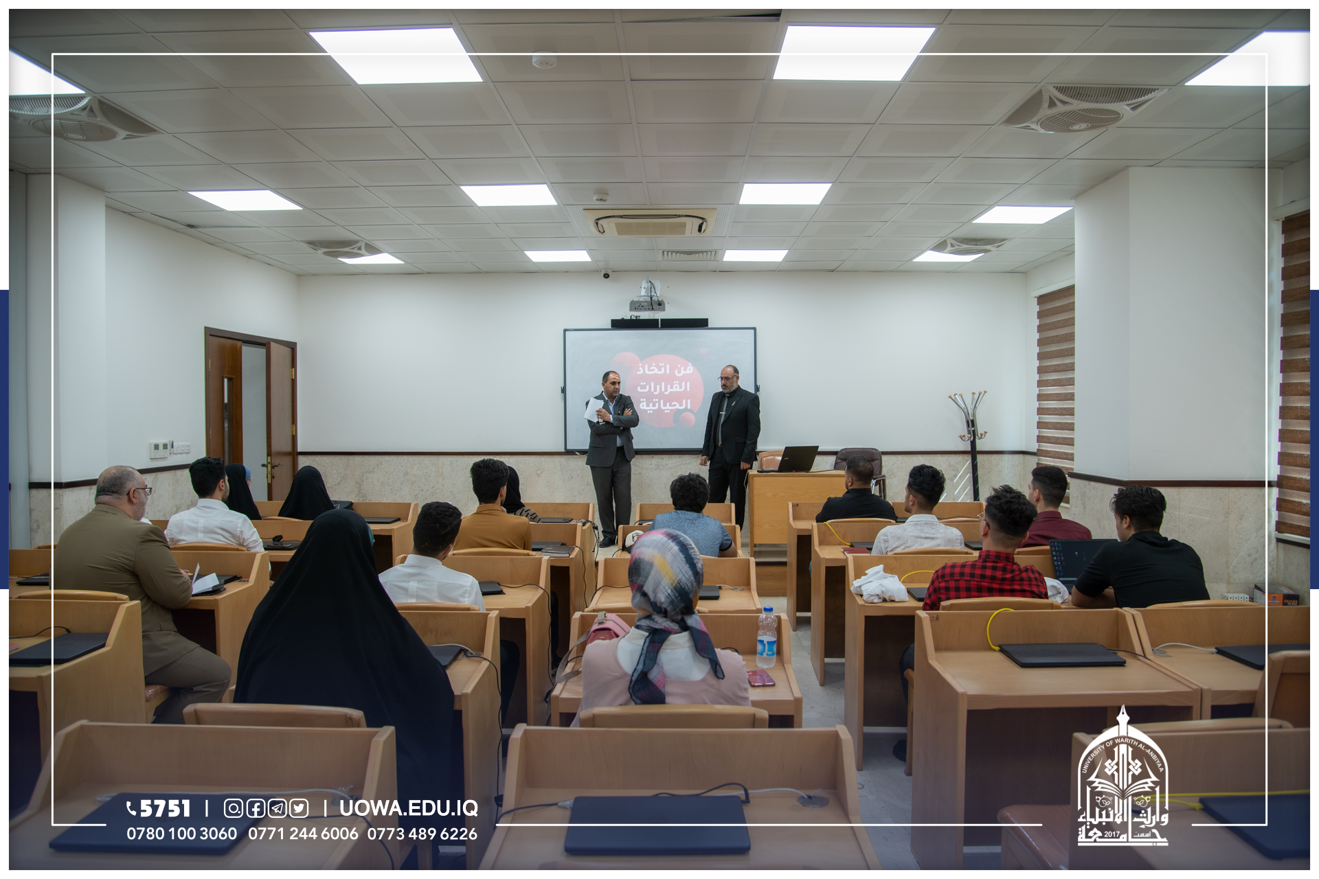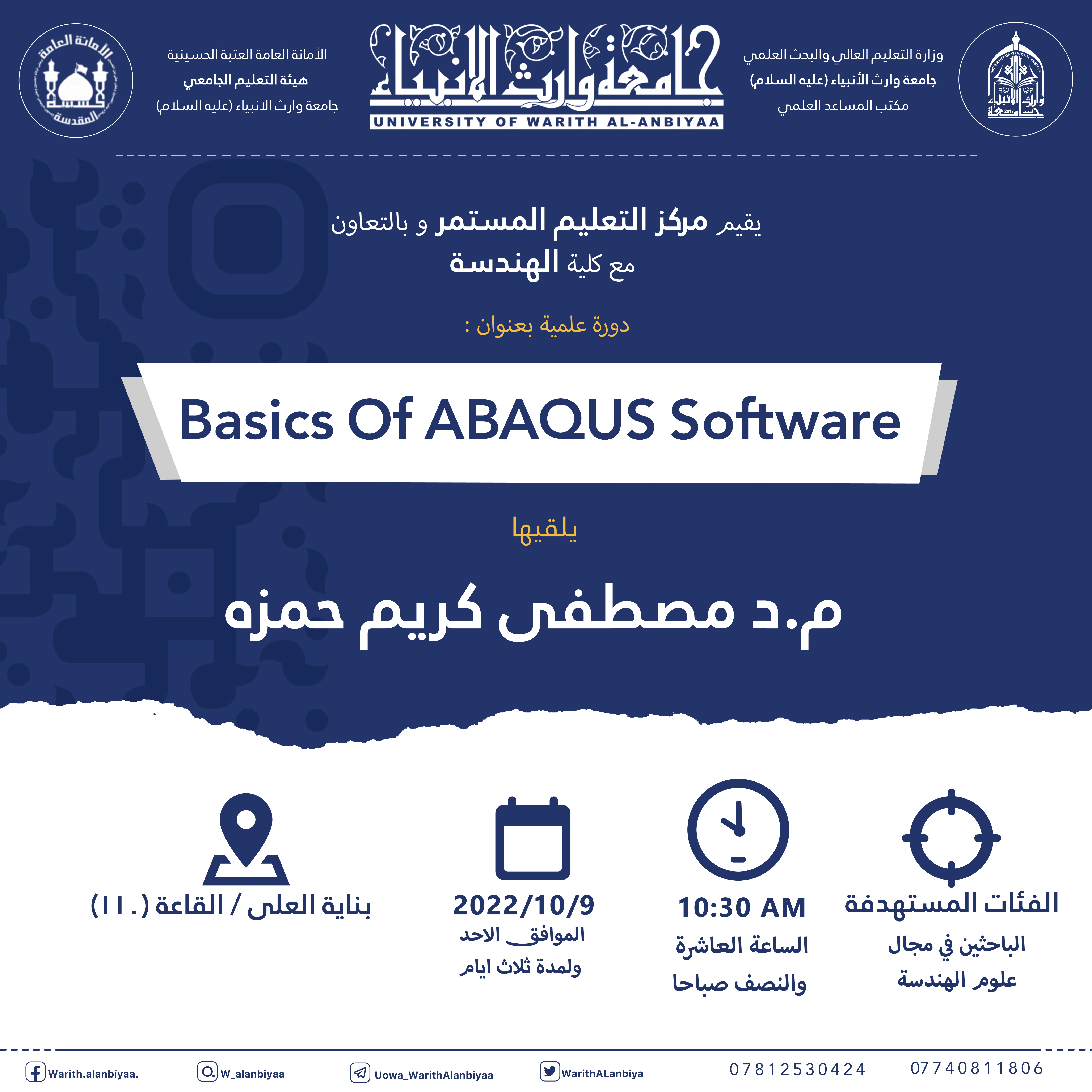 "طلبتنا قادة المستقبل" برنامج تدريبي يطلقه مركز التعليم المستمر في جامعة وارث الانبياء(عليه السلام) لطلبة الجامعة ،ابتداً من يوم الاحد المصادف 9/10/2022 ،ولمدة تسعة ايام.