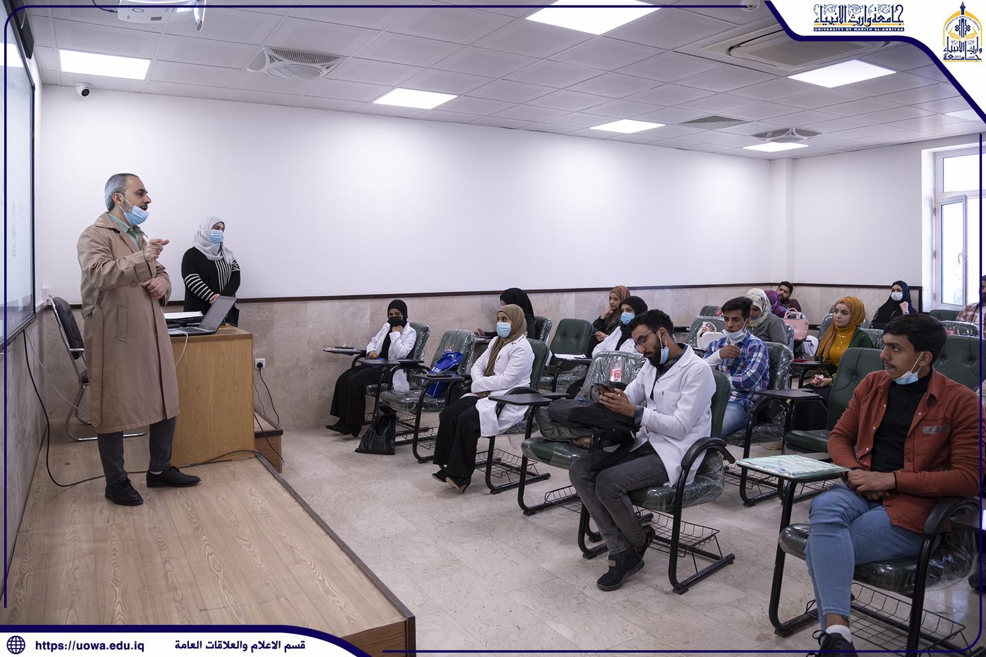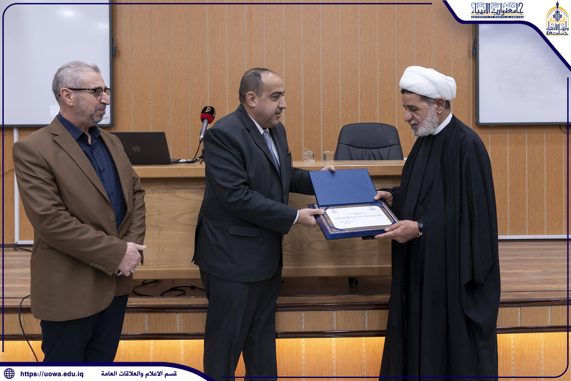 بمناسبة ذكرى وفاة ام البنين (عليها السلام)،و برعاية السيد رئيس الجامعة الأستاذ الدكتور إبراهيم الحياوي ، اقامت كلية العلوم الإسلامية ندوة علمية بعنوان "دور المرأة في بناء المنظومة القيمية" القاها سماحة الشيخ جعفر الابراهيمي(دام توفيقه) وبين سماحته تكريم الإسلام للمرأة بالحجاب، وتكليفها بدور كبير وفعال في بناء المنظومة الأخلاقية والقيمية في المجتمع عبر تنشئة الأبناء على الصلاح وفق مبادئ ديننا الإسلامي.و تطرق سماحته الى حياة السيدة ام البنين(سلام الله عليها) وسيرتها العطرة وتضحياتها التي جعلتها خالدة حاضرة في التاريخ وباب من أبواب استجابة الدعاء، كما دعا بناتنا الطالبات الى الاقتداء بهكذا نساء وعدم الاغترار بما يسوقه الغرب اليوم من نماذج لا تمت لأخلاق الإسلام بأي صلة.