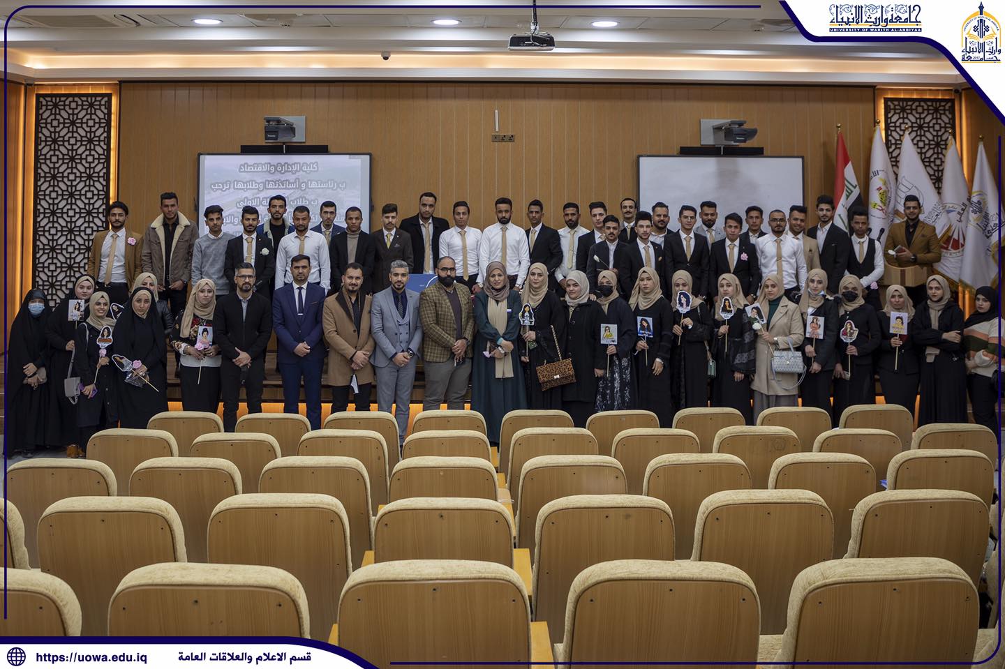 بحضور السيد رئيس الجامعة الأستاذ الدكتور إبراهيم الحياوي والسيد المساعد الإداري الأستاذ الدكتور نوفل الاعرجي والسيد عميد الكلية الأستاذ الدكتور عواد الخالدي والسادة أعضاء الهيئة التدريسية في الكلية، أقام طلبة الكلية حفلاً للتعارف لطلبة المرحلة الأولى/قسم المحاسبة ،حيث القى السيد رئيس الجامعة كلمةً رحب فيها بالطلبة الجدد متمنياً لهم عاماً مكللاً بالنجاح والتفوق، مؤكداً في كلمته على ضرورة اهتمام الطلبة بالجانب العلمي والأخلاقي.