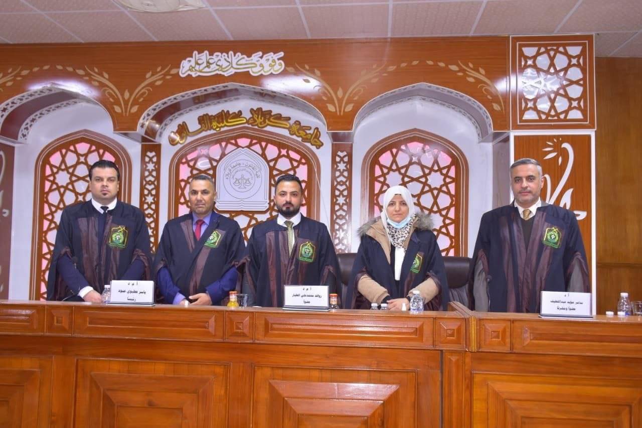 اختير السيد عميد كلية القانون الأستاذ المساعد الدكتور علي صاحب الشريفي عضوا لمناقشة رسالة ماجستير لاحد طلبة الدراسات العليا في كلية القانون بجامعة كربلاء. يذكر ان الأستاذ المساعد الدكتور علي صاحب الشريفي قد تقلد منصب عميد كلية القانون في جامعة وارث الأنبياء(عليه السلام) لكفاءته العلمية ،ولامتلاكه سيرة ذاتية حافلة بالإنجازات والمؤهلات العلمية، ولديه العديد من البحوث المنشورة ومشاركات في المؤتمرات العلمية.
