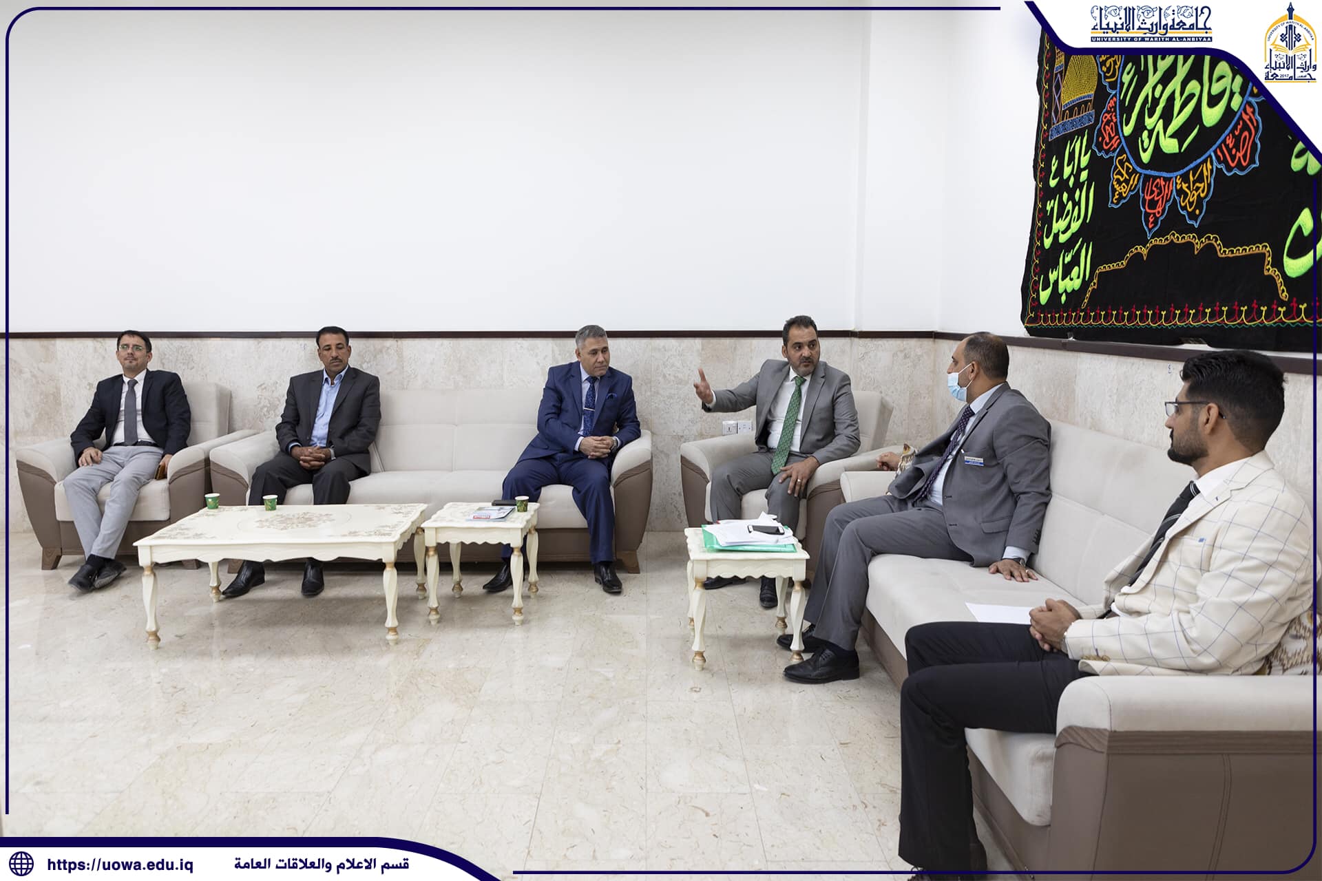 ضمن الاتفاقية العلمية الموقعة بين جامعتي كربلاء ووارث الانبياء(عليه السلام) استقبل السيد المساعد العلمي الاستاذ الدكتور عباس الدعمي وفد مركز الدراسات الإستراتيجية في جامعة كربلاء برئاسة الدكتور فراس الصفار لتفعيل بنود الاتفاقية فيما يخص اقامة المؤتمرات العلمية المشتركة وورش العمل واقامة الندوات العلمية فيما يحقق الفائدة لطلبة الجامعتين.