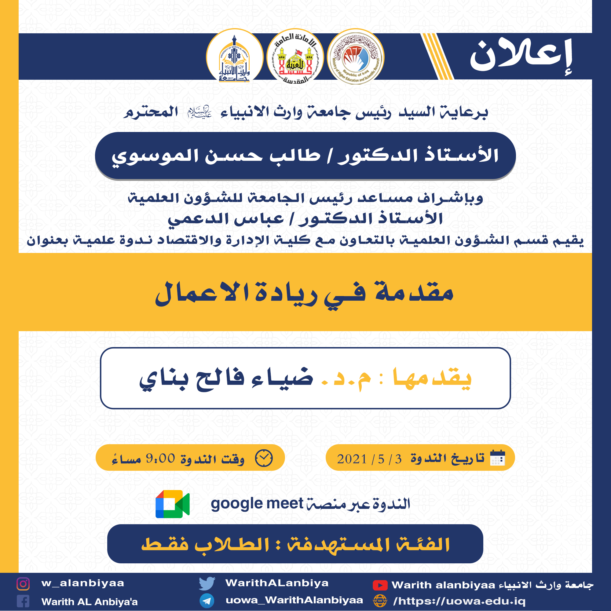 #الامانة_العامة_للعتبة_الحسينية_المقدسة#قسم_التعليم_العالي#جامعة_وارث_الانبياء_عليه_السلام#قسم_الاعلام_والعلاقات_العامة