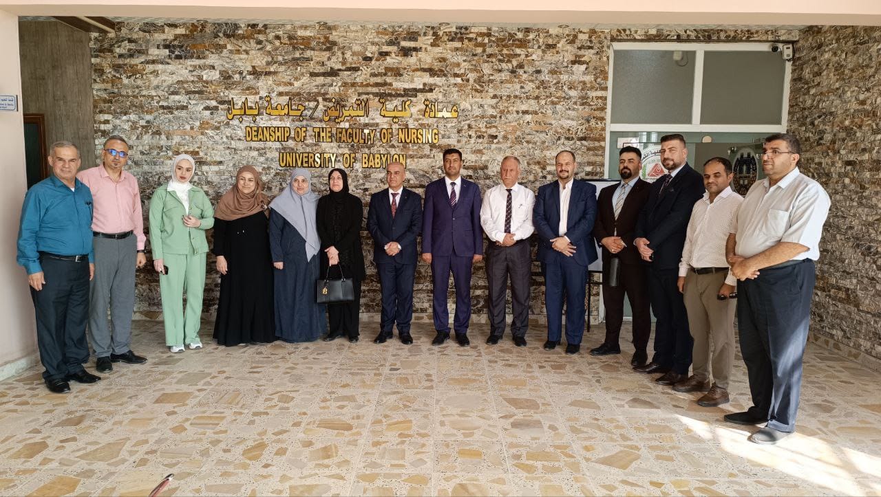 الاستاذ الدكتور مرتضى غانم الجبوري عميد كلية التمريض في جامعة وارث الانبياء مشرفًا على طالب ماجستير امير عقيل برسالته الموسومه العلاقه بين اساليب القياديه و اداء الكادر التمريضي في مستشفيات مدينة النجف الأشرف