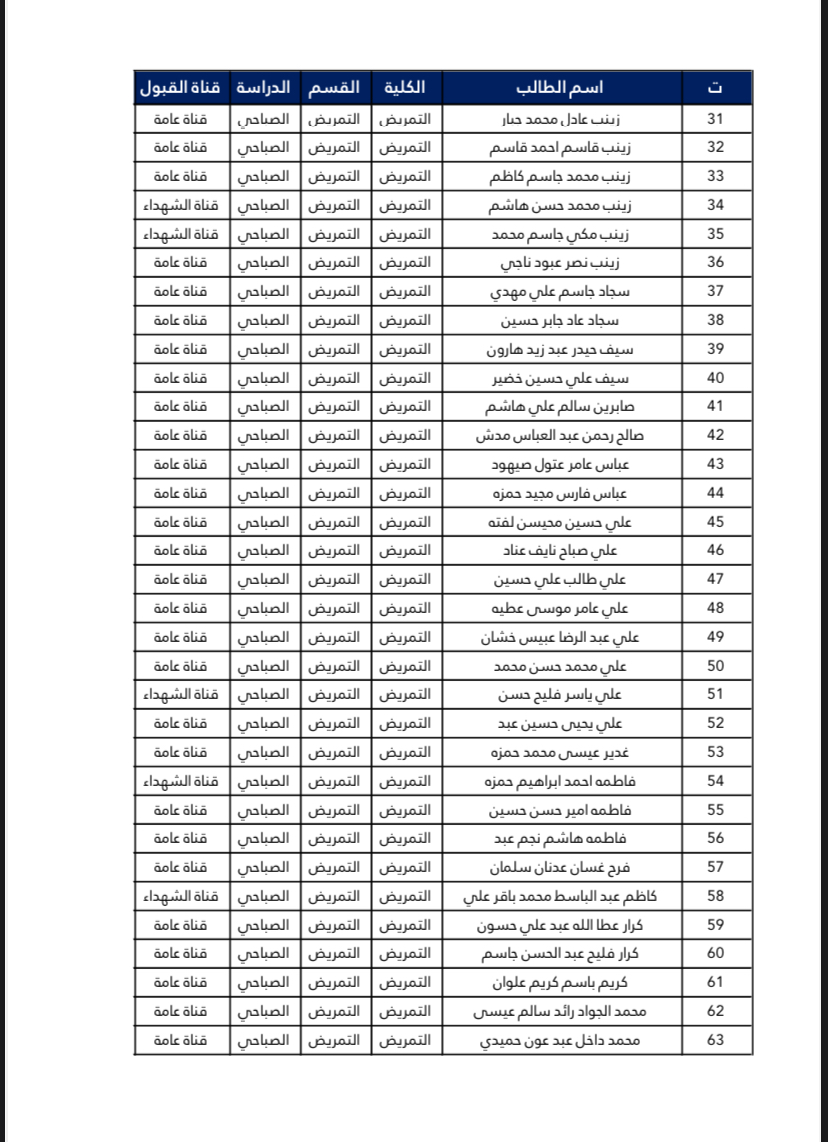 اسماء الطلبة المقبولين في كلية التمريض