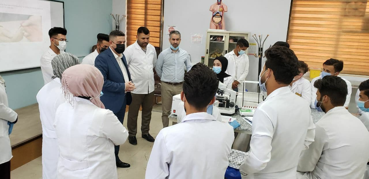 تفقد عميد كلية التمريض في جامعة وارث الانبياء ع الأستاذ المساعد الدكتور مرتضى غانم الجبوري سير المحاضرات العملية الحضورية لطلبة كلية التمريض - المرحلة الأولى