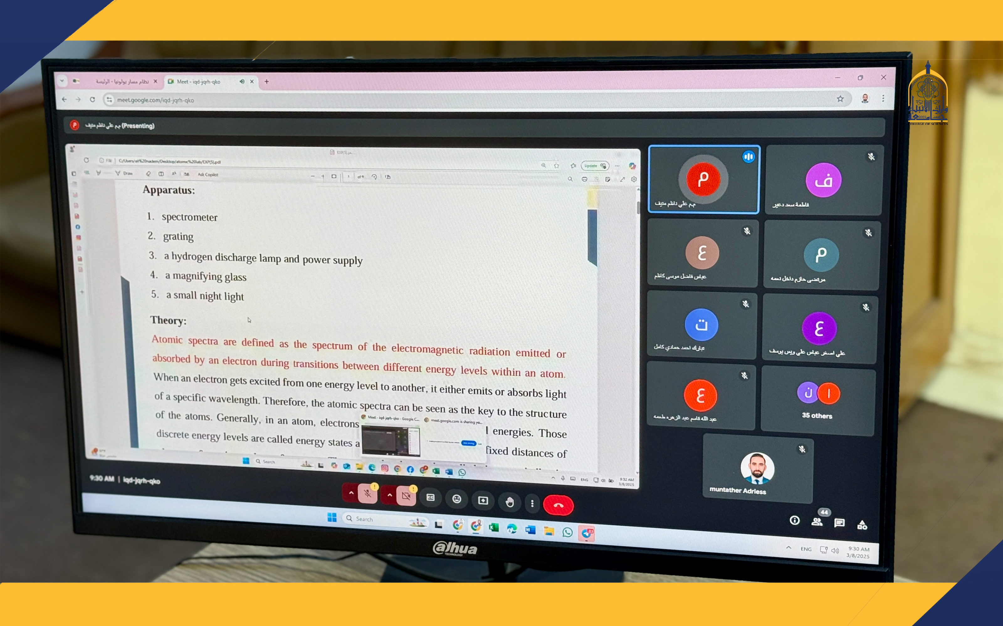 كلية العلوم في جامعة وارث الأنبياء (عليه السلام) تقدم محاضرات إلكترونية بتوجيه من عميد الكلية