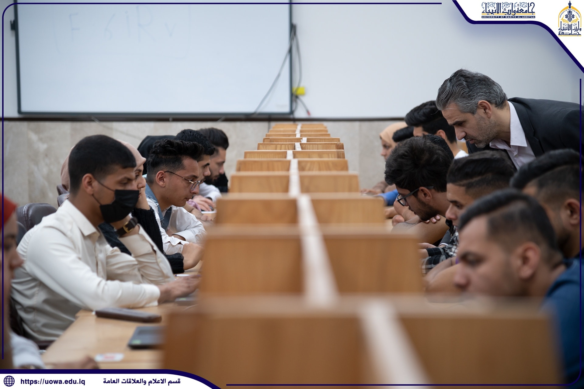بإشراف السيد رئيس الجامعة الاستاذ الدكتور ابراهيم الحياوي والسيد المساعد العلمي الاستاذ الدكتور عباس الدعمي والسيد عميد كلية التمريض أ.م.د مرتضى الجبوريوبالتعاون مع مركز الحاسبة الالكترونية وشعبة التعليم الالكتروني في الجامعة أجرت كلية التمريض الامتحان التجريبي للاستعداد للامتحان التقويمي الوزاريحيث أدى الطلبة الامتحان بعد استلام الاسئلة الوزارية من قبل عميد الكلية الاستاذ المساعد الدكتور مرتضى الجبوري والفريق الالكتروني للجامعة الذي بدوره وزع الاسئلة على الطلبة، وتابع الفريق الوزاري من خلال المنصة الالكترونية المخصصة للامتحان التجريبي سير العملية الامتحانية داخل الكلية من خلال الدخول الى القاعات الامتحانية والتحدث مع رئيس الجامعة وعميد الكلية، والمراقبين الموجودين هناك ،وقد أشادوا بالتنظيم العالي الذي أقامته الكلية لأداء الامتحان.يذكر أن جامعة وارث الانبياء (عليه السلام) قد جهزت مسبقاً ثمانية مختبرات علمية بأحدث الوسائل التعليمية الحديثة.