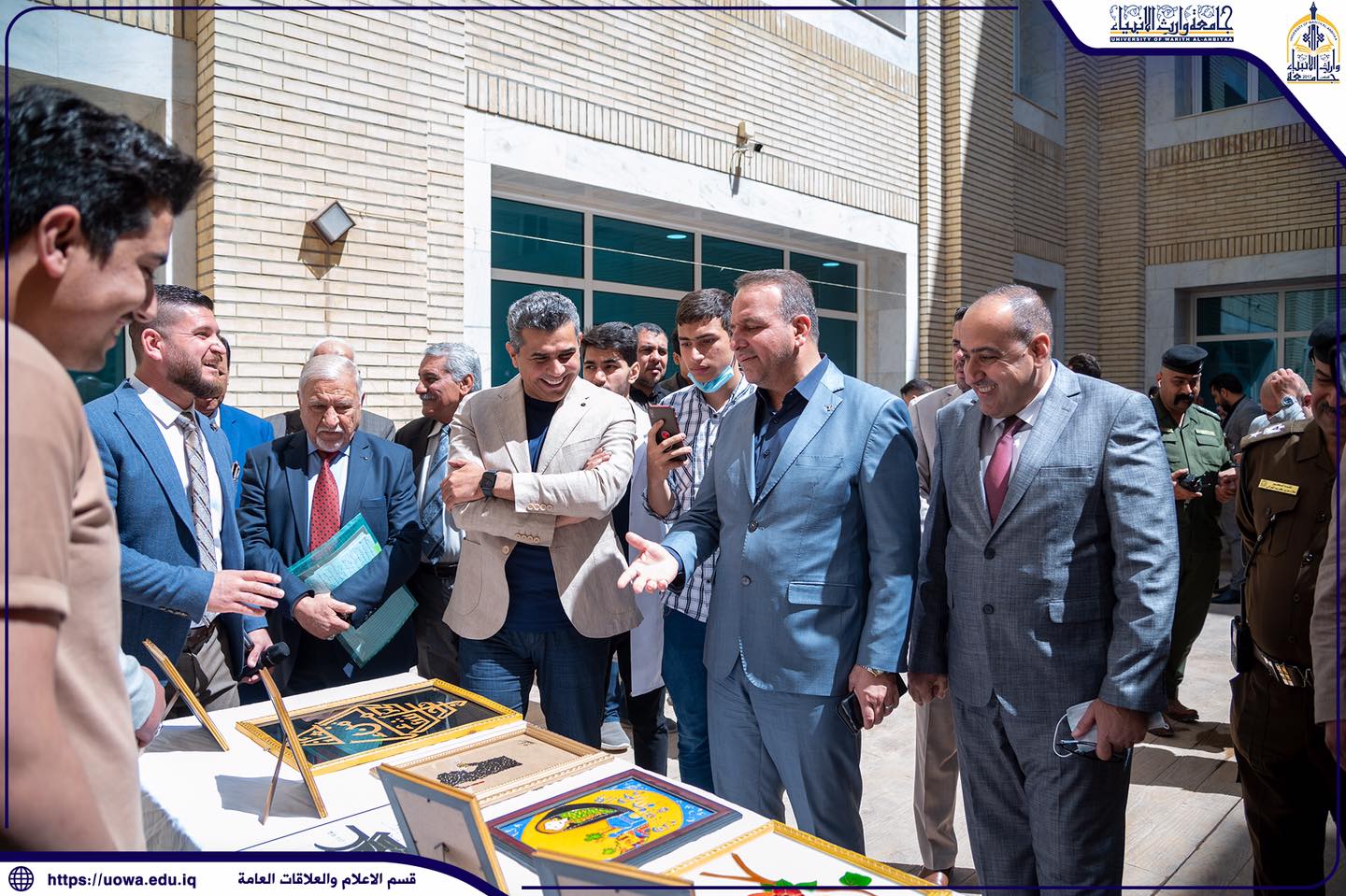 على هامش ورشة العمل التي أقامتها كلية العلوم الاسلامية للتوعية من خطر المخدرات، اطلع السيد رئيس هيئة التعليم الجامعي الاستاذ الدكتور حيدر التميمي والسيد رئيس الجامعة الاستاذ الدكتور ابراهيم الحياوي، واللواء سعد معن على المعرض الفني لطلبة الجامعة الذي ضم مواهب الطلبة ونتاجاتهم الفنية وأعمالهم اليدوية.