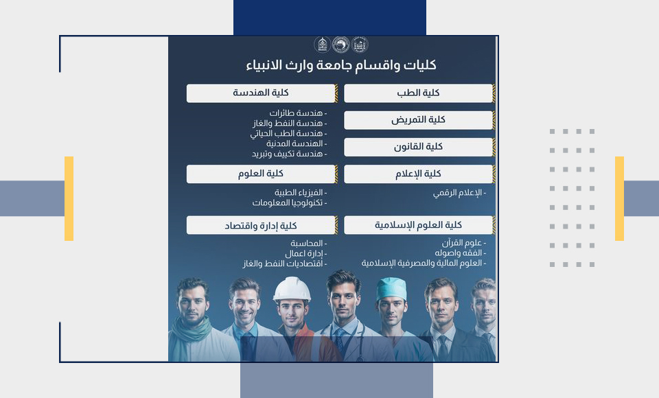 اكتشف تخصصات جامعة وارث الانبياء (عليه السلام) في المجالات الطبية، الهندسية، والعلوم الإنسانية.