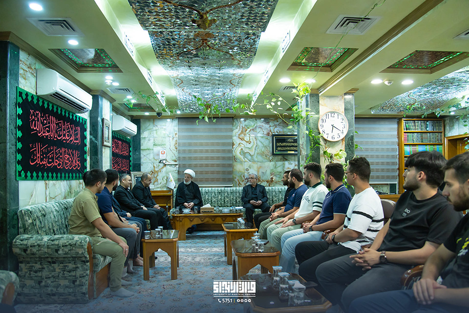استقبل سماحة المتولي الشرعي للعتبة الحسينية المقدسة، الشيخ عبد المهدي الكربلائي، في مكتبه، رئيس جامعة وارث الأنبياء (عليه السلام)، الأستاذ الدكتور إبراهيم سعيد الحياوي، والسيد مساعد رئيس الجامعة للشؤون العلمية، الأستاذ الدكتور واقد الموسوي، وعدد من الوافدين العرب المشاركين في برنامج التبادل الطلابي (التدريب الصيفي).
