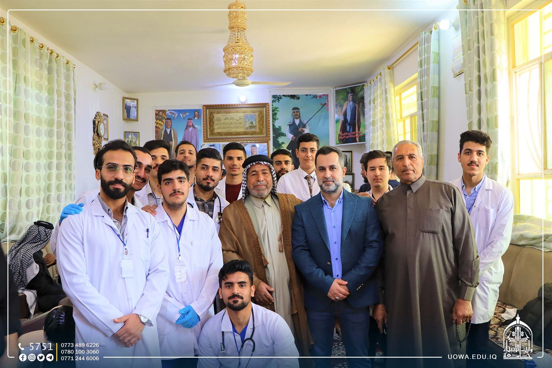 ضمن مبادرة "بركات الانوار المحمدية" التي اطلقتها هيئة الصحة والتعليم الجامعي في العتبة الحسينية المقدسة بمناسبة الولادات الشعبانية المباركة، اقامت كلية الطب بالتعاون مع كلية التمريض في جامعة وارث الانبياء(عليه السلام)، جولة ميدانية للقرى في اطراف محافظة كربلاء المقدسة بإشراف عمادة كلية الطب لتقديم الدعم الطبي لساكني هذه القرى و الاستشارات الطبية لهم.
