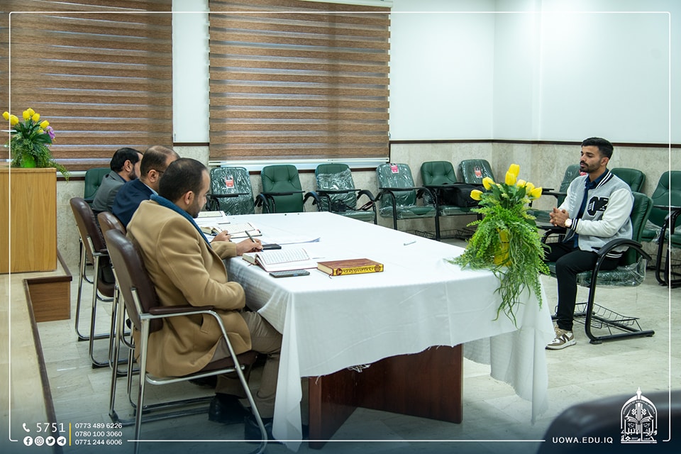وجرى الاختبار بتحكيم لجنة علمية مشتركة من اساتذة كلية العلوم الاسلامية والعتبة الحسينية المقدسة .
