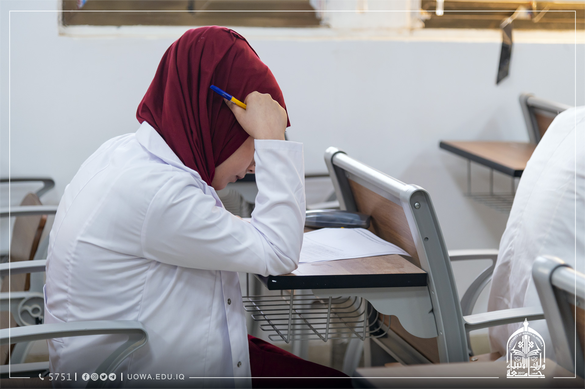 بالصور : امتحانات الفصل الاول لطلبة كليتي الهندسة والعلوم الاسلامية في جامعة وارث الانبياء (علية السلام)