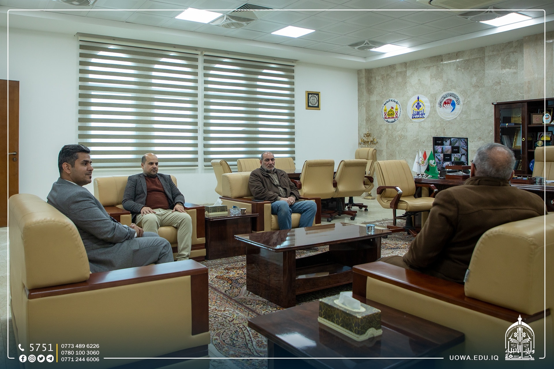 استقبلت رئاسة جامعة وارث الانبياء(عليه السلام) متمثلة بالاستاذ الدكتور نوفل الاعرجي مساعد رئيس الجامعة للشؤون الادارية، وفد من ديوان الوقف الشيعي (دائرة العتبات والمزارات ) برئاسة السيد علاء القاسم مدير عام العتبات والمزارات.