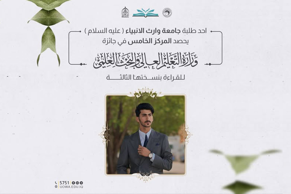 حقّقت جامعة وارث الأنبياء (عليه السلام) إنجازًا وطنيًا متميزًا بحصولها على المركز الأول في جائزة “أثر” لمبادرة الجامعة المستدامة، التي أُقيمت بمشاركة 59 جامعة حكومية وأهلية من مختلف أنحاء العراق، من بينها جامعات إقليم كردستان.