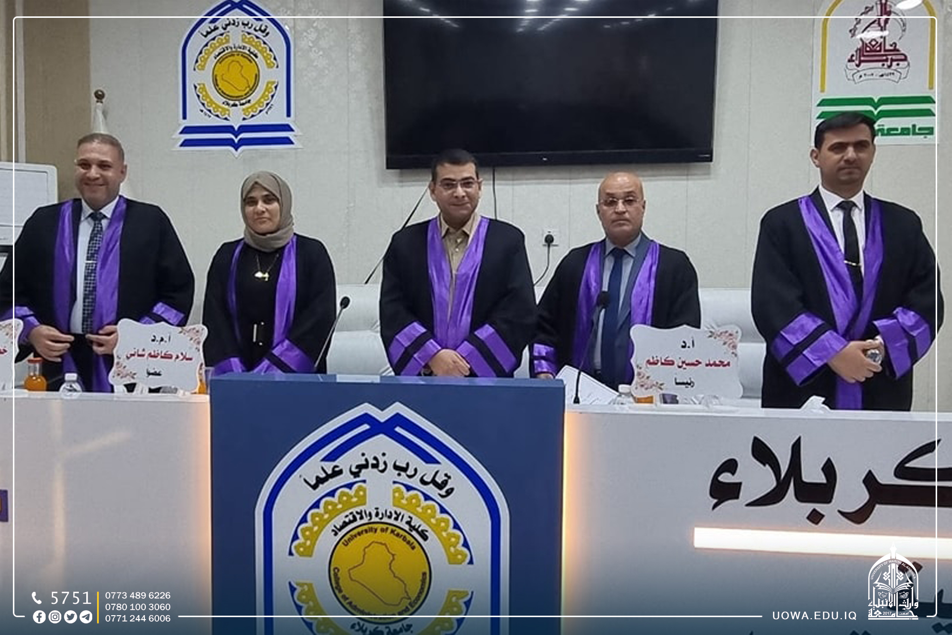 اختيار معاون عميد كلية الادارة والاقتصاد في جامعة وارث الأنبياء (عليه السلام) عضوا في لجنة مناقشة رسالة ماجستير