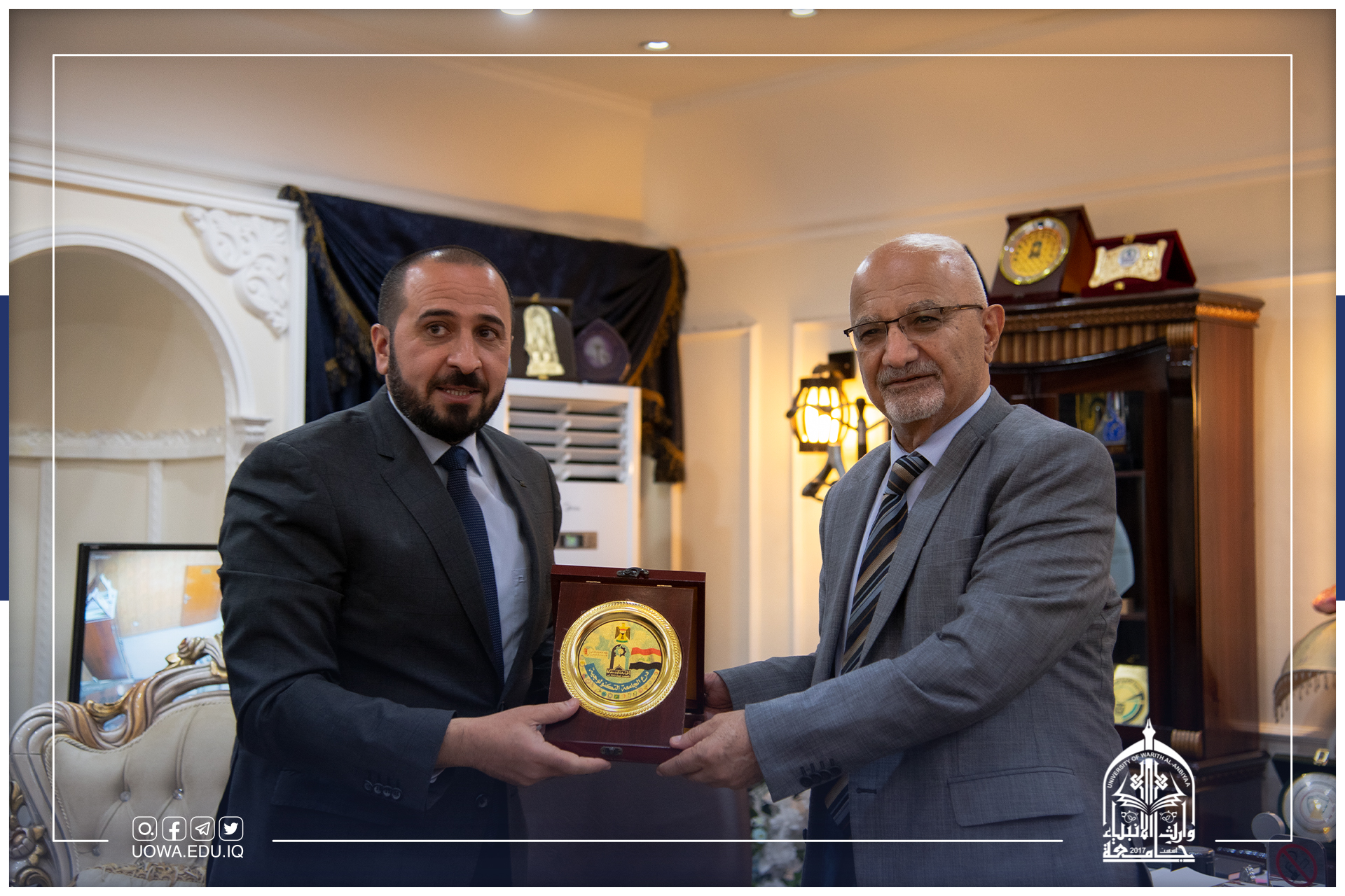 استقبلت جامعة وارث الانبياء(عليه السلام) متمثلة برئيس الجامعة الاستاذ الدكتور ابراهيم الحياوي ومساعديه العلمي والاداري ، وفد دائرة التعليم الاهلي الجامعي برئاسة الاستاذ الدكتور حسين العبدلي، للاطلاع على البرامج الاكاديمية والعلمية في الجامعة.