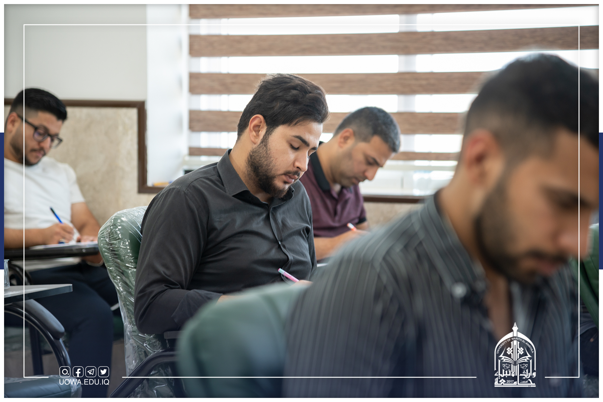 رئاسة جامعة وارث الانبياء(عليه السلام) تتابع سير الامتحانات النهائية لطلبة كليات وأقسام الجامعةامنياتنا لجميع طلبتنا الاعزاء بالموفقية والنجاح