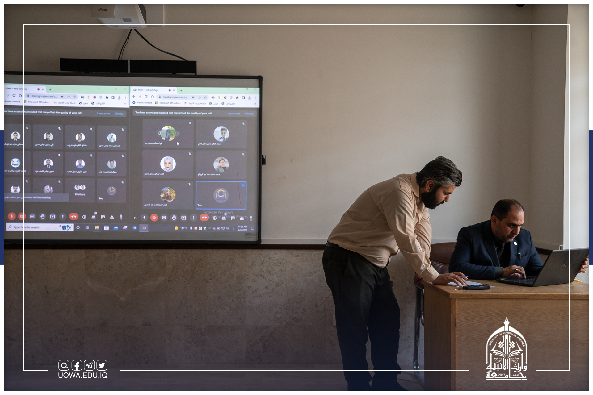 زار وفد الوزارة للتعليم الالكتروني، جامعة وارث الانبياء(عليه السلام) للاطلاع على استعدادات الجامعة للامتحان التقويمي الوزاري لكليتي الطب والتمريض، وتنصيب البرنامج الوزاري الخاص بالامتحان التقويمي في سيرفرات الجامعة، وكان باستقبال الوفد مساعد رئيس الجامعة للشؤون العلمية الاستاذ الدكتور عباس الدعمي، وبدوره رافقهم للتجول داخل مختبرات الحاسوب ومركز الحاسبة الالكترونية والــ (Data Center) الخاص بالجامعة.