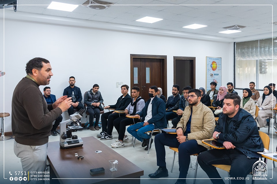 اقام مركز التعليم المستمر وبالتعاون مع كلية الهندسة/ قسم هندسة الطب الحياتي دورة تدريبية بعنوان(حول أسس عمل المجهر الضوئي في المختبرات والورش الهندسية).